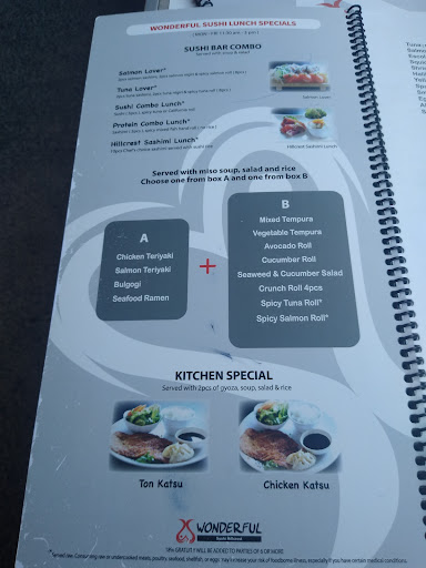 Read morenot wonderful, not at all. 1. Service was so slow... it took so long to get our drinks that the food already came then the drinks, I mean come on, e we ordered and it took more than half an hour for the first of our order to arrive. Then 15 more minutes before the drinks came and only then because I ordered them again. Our party is 4 adult and 3 kids under 8 years of age, the youngest is 3. The food for the baby was very overdone nearly burnt (Katsu Chicken). The sushi was fine but small... like the circumference was very small, something like food court sushi not high quality, something like discount sushi... but not what I would consider "great" sushi. The NYNY roll was terrible and the cream cheese had a weird taste... one in my party almost hurled. The rest of the rolls were just plain. While the food was average the price is not. Priced like high end sushi. All of the special rolls were 14,15 or 16. We arrived at 9pm and finished eating around 10:15... they proceeded to forget about my party, tucked away in the back. After they took our dishes, and 15 minutes passed , I went to the waitress and asked for a check. 15 more minutes passed and I went to ask again for the check... lots of smiles but no friggin check! Finally the check comes and they have charged us and additional $25 tip because the kids count as adults in service fee. Totalling my check up to $176 . I have to tell you, I was so not happy. This was just an hour or so ago so it's fresh...