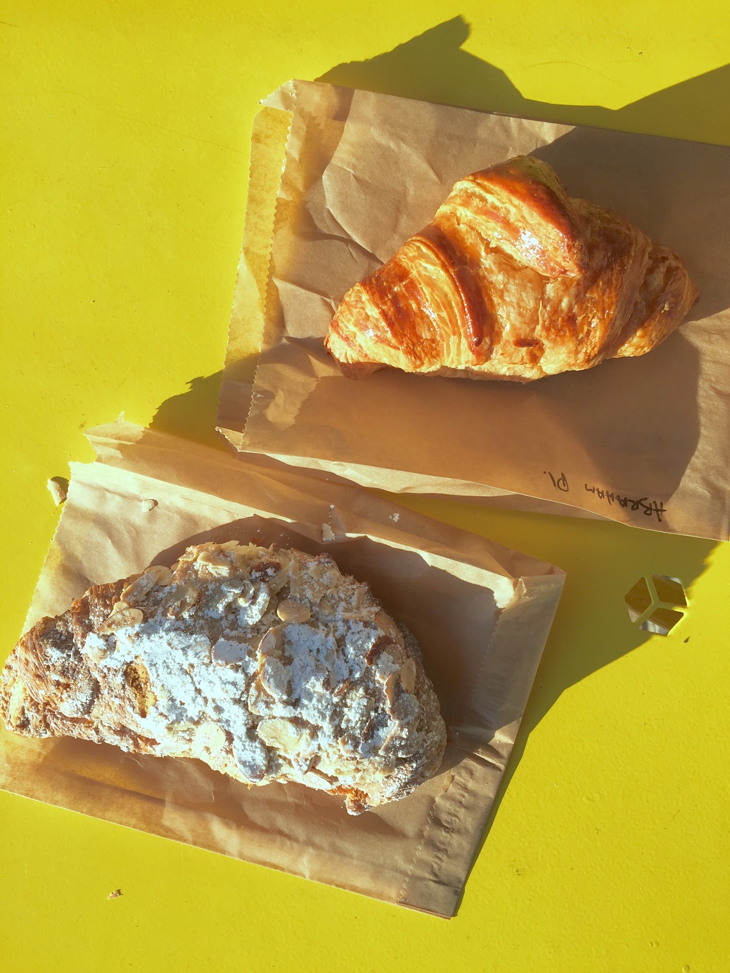 This review is coming from a non-coffee-drinker, so please take this with a grain of...coffee grounds? My coworkers rave about this place. It is apparently an amazing coffee shop. For me, I'm delighted that they carry the absolutely mind-blowing almond croissants from Opera Patisserie, which is nearby, but Zumbar is more convenient. Something for everyone! However. This place is so, so noisy inside. It's also not a great use of space. There are a few tables along the edge and a big open space in the middle, a couple tables outside. People who are waiting for their order are awkwardly splayed about. The machinery is really loud, so you probably aren't going to be talking to someone else much, anyway. I've taken a client here and sat outside and it was still difficult to have an informal meeting here because of the noise and the rickety chairs and tables. I feel like this coffee shop can't quite decide if it is counter service only or if it is trying to be a place people come hang out. What I would likely do, if anyone asked me (they won't) would be to put a thick piece of plexiglass behind the cashier, between him/her and the equipment, which is large and looks vaguely impressive. That way, if showing off said mysterious machinery is important, it can still happen, but contain the noise more. To me, the back area with all the things doesn't look particularly like something one really needs to show off to enhance the experience, but what do I know. In any case, stop by to pick up an almond croissant or other assorted and delightful pastries, and even coffee if you are into that kind of thing, but save your ears and get...