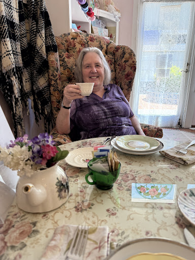 This is a delightful tea room. The ambiance is quaint and cozy. The food is tasty but the peach scone was not served warm from the oven and was therefore a little damp and missed top marks for that. Scones are a critical foundational component of a good tea and I hope this will be something that is considered to enhance the taste for their customers. The potato soup with fresh chives on to and small crisp crackers was very good! The tea I ordered was vanilla almond and was decaf. It was simply scrumptious!!! The tea sandwiches, especially the chicken salad croissant and the turkey provolone were especially good. The delightful crisp crackers with basil pesto on top of the turkey sandwich was a unique and memorable taste sensation! Of course chocolate dipped strawberries are always a hit and the lemon Bundt cake was yummy as well! Plus the prices were great and I will most definitely be going back! I must say the wooden back chairs at the table we were seated at next to the window hurt my back. We asked and were allowed to move to the wing backed chairs with pillows which made all the difference to us as we are in our 70’s. We saw many happy people celebrating tea together and at least two sets of young girls with their mom’s dressed up and learning the joys of a tea party. Made me smile! Thanks! And please cook those scones right before serving them warm from the oven… it really does make a...