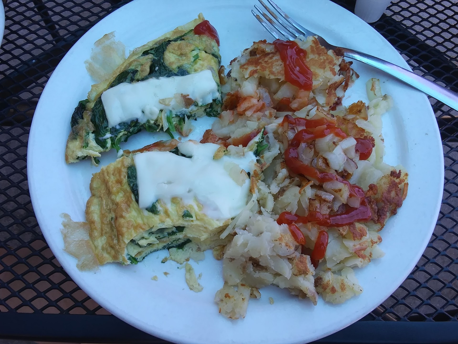 I arrived on a Saturday morning as a first time customer, and sat at the bar. Their paper menu has most of the basic breakfast and lunch American cuisine. I ordered their classic French Toasts with strawberries, OJ and coffee. Food was banal flavor and taste. (Syrup and butter available upon request! My goodness!) Whipped cream looked like it was put in a hurry on my FT. Reg Coffee was okay. Server forgot my OJ; so I cannot comment on its quality. I waited patiently to see if she remembers but failed.