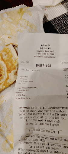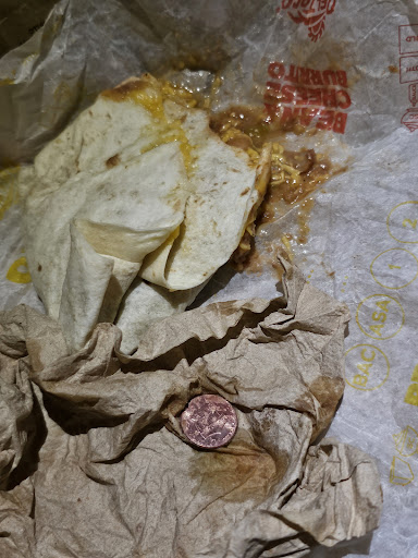Read moreI ordered a green bean burrito and to my surprise, there was a penny inside. As I bit gently I felt something hard. I thought it must be a chicken bone, but how could it be since it's a bean burrito. As I was looking for the "bone" I was completely taken back by seeing a penny. I was so disgusted! I immediately went to the restaurant to tell them what I had found, but was doubted by the cashier at the drive through. She did not seem concerned or even offer an apology. On the contrary, she made me feel like I was a liar or that I put the penny inside. I understand that there are people that may do such a thing, but I have no need to do this. I had to ask for a refund because she didn't even offer. She did give me a refund, but was more concerned about getting back the half-eaten burrito and penny (evidence). Multiple times she kept telling me that she would need the food back so it can be thrown away. I will not be eating at this Del Taco anymore or at any. Still feel the taste of the metal penny on the tip...