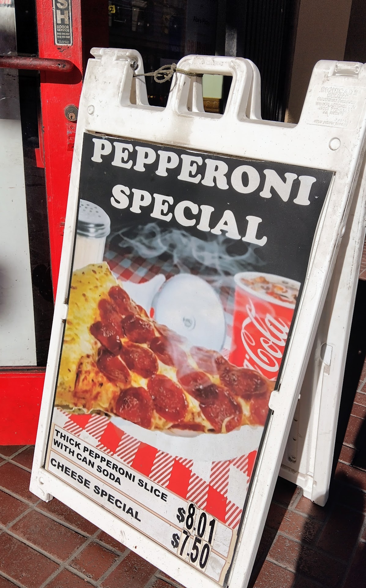 Blondie's serves pretty decent pizzas and you can get it by the slice so you can grab a slice and walk out if you want or grab a table downstairs which I wouldnt opt for. Each slice is very competitively priced and even though I have never ordered a whole pie for takeout, I bet it wouldnt disappoint. Specials get additional discounts and change daily so pick which one you know off the board and order.