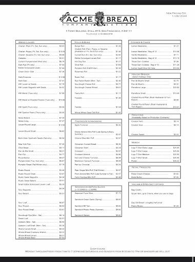 Read moreI tried Acme Bread Company for lunch a couple of days ago. It is located in the Ferry building so at the peak lunch hour like every other place it had a huge line. Acme Bread Company specializes in different kinds of bread so it is not a natural choice for lunch, but due to a late breakfast, I just wanted to do a light sandwich so Acme fitted the bill perfectly. I decided to get the Green Garlic Sandwich ($6.48). I managed to get the last sandwich so it is advisable to come early if you want to get your hands on one.