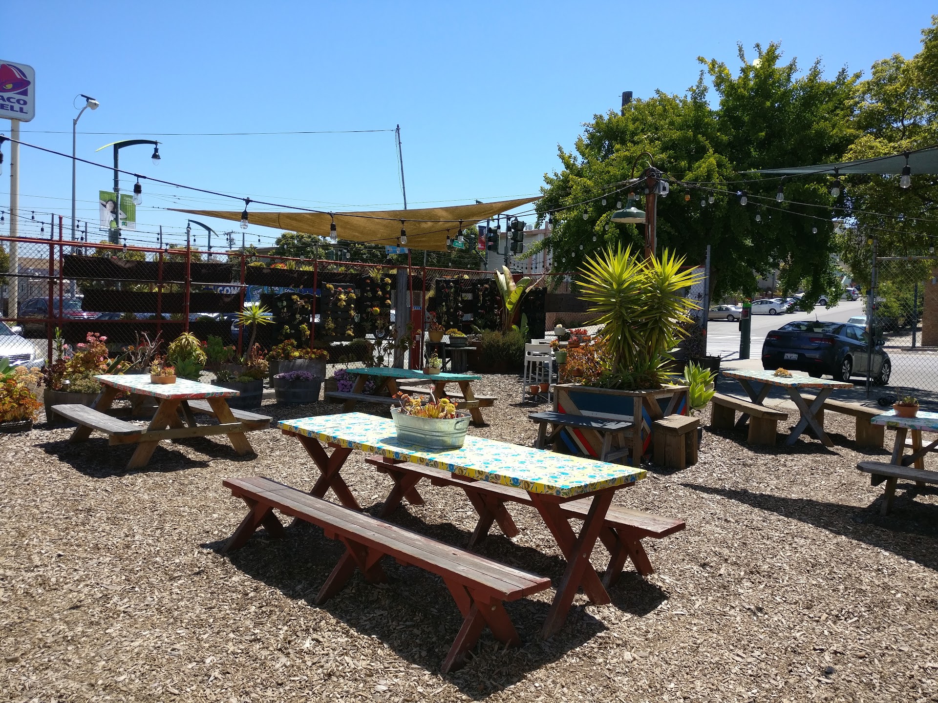 Read moreAn empty lot transformed; a food truck anchored; a chainkink fence disappears under succulent grow curtains. The outdoor environment is a little oasis. The pizza is delicious.