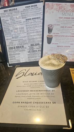 So i was just in the neighborhood looking for coffee. I'm specifically fond of trying unique lattes when I can and this place caught my eye because a lot seemed to be happening. I walk in, a little apprehensive that there's a private party ? But also intrigued if it was some neighborhood bookclub meeting? Amd turns out it was a pop up organized by the cafe itself. They were serving latte - dessert combinations. I didn't partake in the combinations but I did try one of the most interesting lattes they had on their menu for the day - a miso sesame latte! It was fabulous and the whole team was so friendly. They were curious about feedback on the latte, which was phenomenal and the overall vibe was super inviting! They had a valnetines day special menu till stocks last too which I hope I get to try the next time I'm there. I'm excited that they do special seasonal menus, and look forward to trying more...