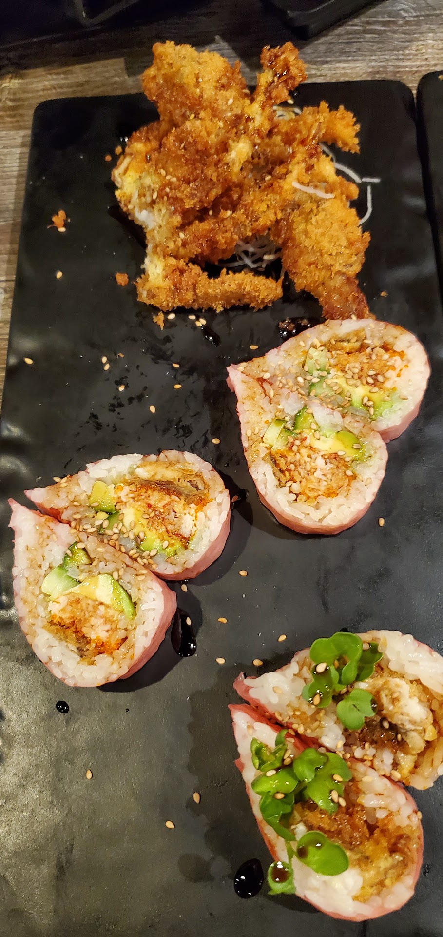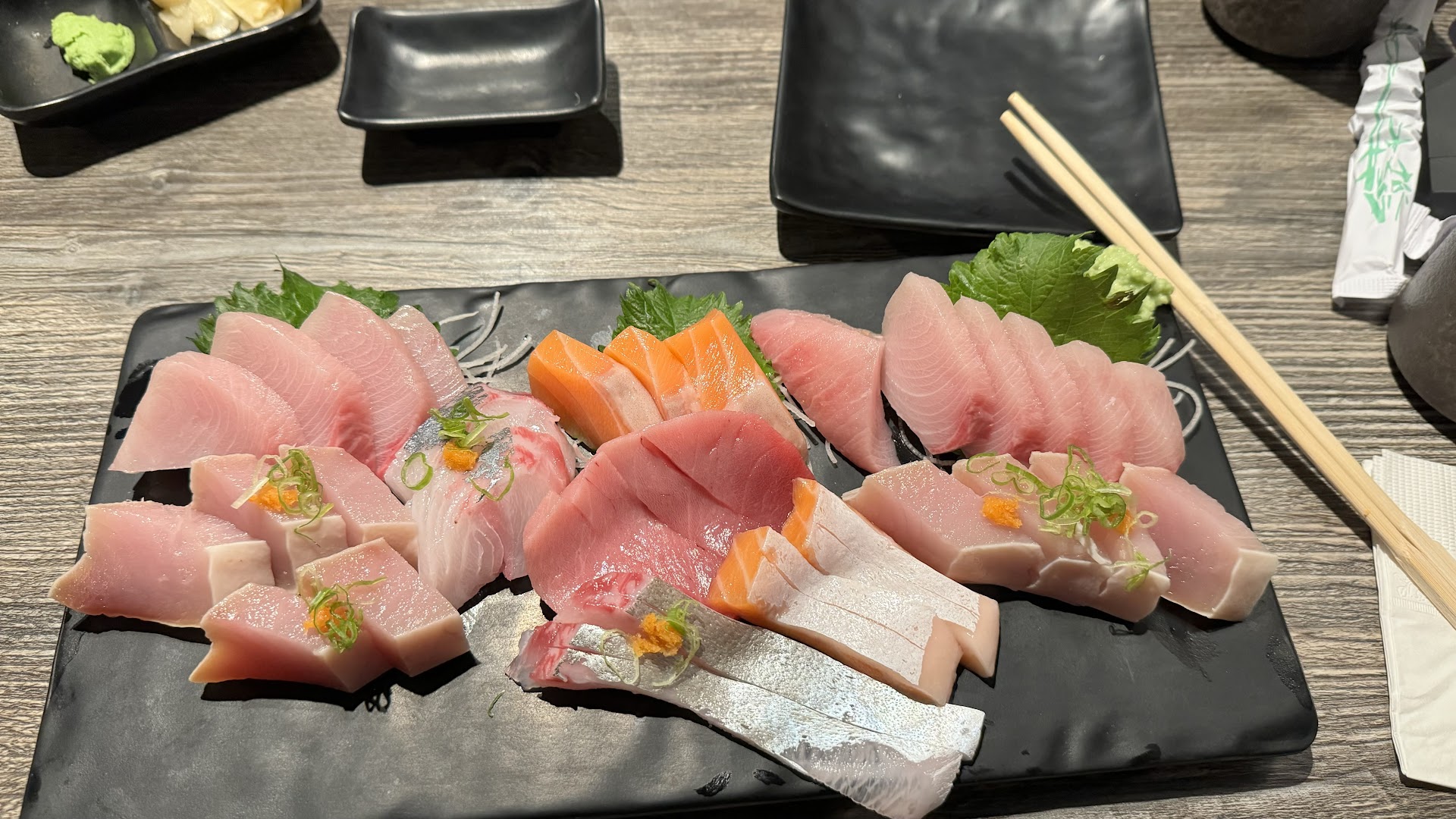 Read moreI order the Omakase which was good for $42 but my husband was hungry and wanted a little more than 10 pieces, so he ordered a Deluxe âchef choiceâ sashimi for $64 and basically their deluxe version was just 1/2 of the plate was cheap common yellowtail & abacore tuna, and the other 1/2 was regular salmon with 2 pieces of thinly slivered salmon belly. No variety at all! Hey if you donât want to give better fish for Deluxe sashimi then charged more to add them. Donât use the word âdeluxeâ when you just use a boat load of mediocre meat with no variety. Looks like âchefâs choiceâ to them is to get rid of whatever cheap fish they have...