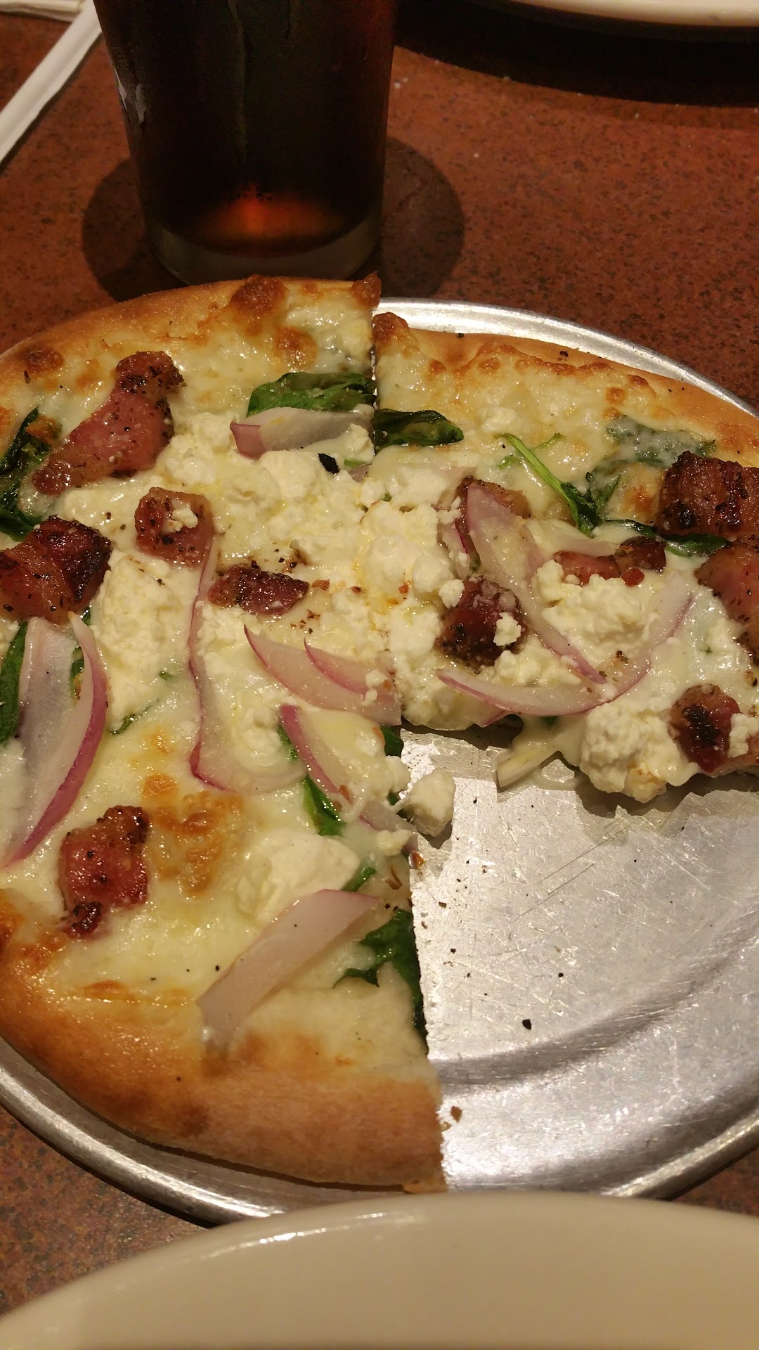 We went to Amici’s following a game at AT&T tonight, late evening. We ordered a half-order of breadsticks, a small order of penne pasta marinara, and a small margherita pizza. The bread sticks were served with ranch, surprisingly, in parallel with the couple seated across from us who ordered an appetizer of chicken wings. We both remarked that the breadsticks would’ve been considerably better if served with marinara. When the food was to arrive, however, a second server placed our pizza on the other couples’ table in error. My wife joked that our meal had been served to them by mistake. Subsequently, the two servers realized the mistake, after looking at the various tabs, and the original server took the pizza, which by the time had sat on the table of the other diners for some time while they discussed the issue, and placed it on our table with a cursory apology for the mix up. It was a little shocking to everybody, and the other patrons felt compelled to tell us that they had not touched the pizza despite it having been sitting on their table for some time. Then a senior server or manager, pulled our server aside, at which time she offered to remake the dish. But that was after it had already been sitting on our table. By that time, we just wanted to eat and go, as we were very hungry following the game. Never an acknowledgement from the manager, nothing changed on the bill. (It’s 16.50 for a pizza twice served, btw.) In reality, it was not the hugest of errors- mistakes are certainly common, but their inability to manage it with any degree of tact was a problem. The pasta was served well after the comedy of errors with the pizza, at least 5 minutes afterward, and the quality of the food did little to erase the service issues. Approach with caution, even if you...