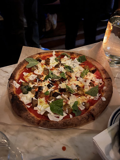 Two solid starts for food and the ambiance - the pizza was delicious, super thin crust, the tomato sauce had a kick and it was a perfectly balanced between all the veggies. The bar also was super rad, it had a old gentlemen's vibe w books, old record and dark wood.