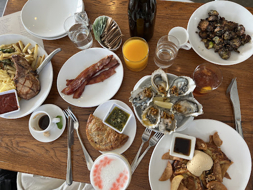 Read moreCame here for brunch this morning. (+) Cute location on Treasure Island. Nice outdoor seating area, dog friendly, also very nice decor inside. (+) $16 bottomless mimosas. At $8 for an individual mimosa, this is quite a good deal! (+) Pork belly pancakes - moist, good condiments and sauce on top, although I think the pork belly was a bit lost on me to be honest. (-) Oysters - $2.50 per half shell, a bit overpriced and I think they could have been seasoned better. (+/-) Avocado toast with duck carnitas - lots of avocado toast for the money! Avocado was fresh, duck carnitas were good. The fried chickpeas, however, were cold and soggy. Not good. Would order them without. (+/-) Bison burger, add egg and bacon. Was good, egg was cooked well, buns were good, but we ordered the bison medium rare and it came out well done. The potatoes that came with the burger were warm and crisp though, so that was yummy. (-) Bacon and chive waffles. Super dense, not fluffy. The short rib that it came with did not go well with them - it was like having two separate dishes on my plate - not congruous at all. The short rib was almost stew-like and came with zucchini and carrots. Was weird.