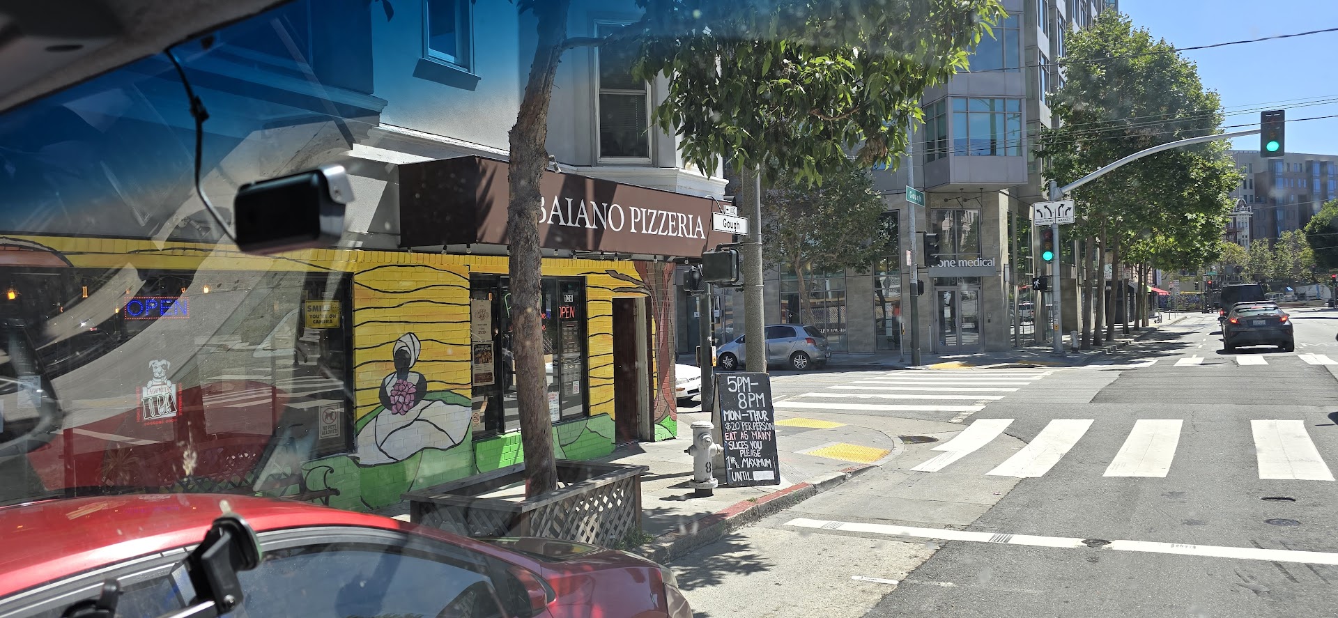 BAIANO SF PIZZA, Address: 100 Gough Street, San Francisco, CA, 94102 at the corners of Page & Gough Street.