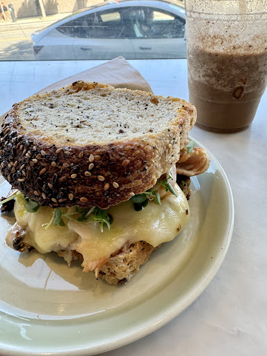 I ordered the smoothie with the coffee shot in it and the Turkey Sandwich. The sandwich was really good. The pesto dressing was delicious and a great sauce to add to the sando. The bread looked thick, but it was a great choice given how “saucy” the sandwich was.