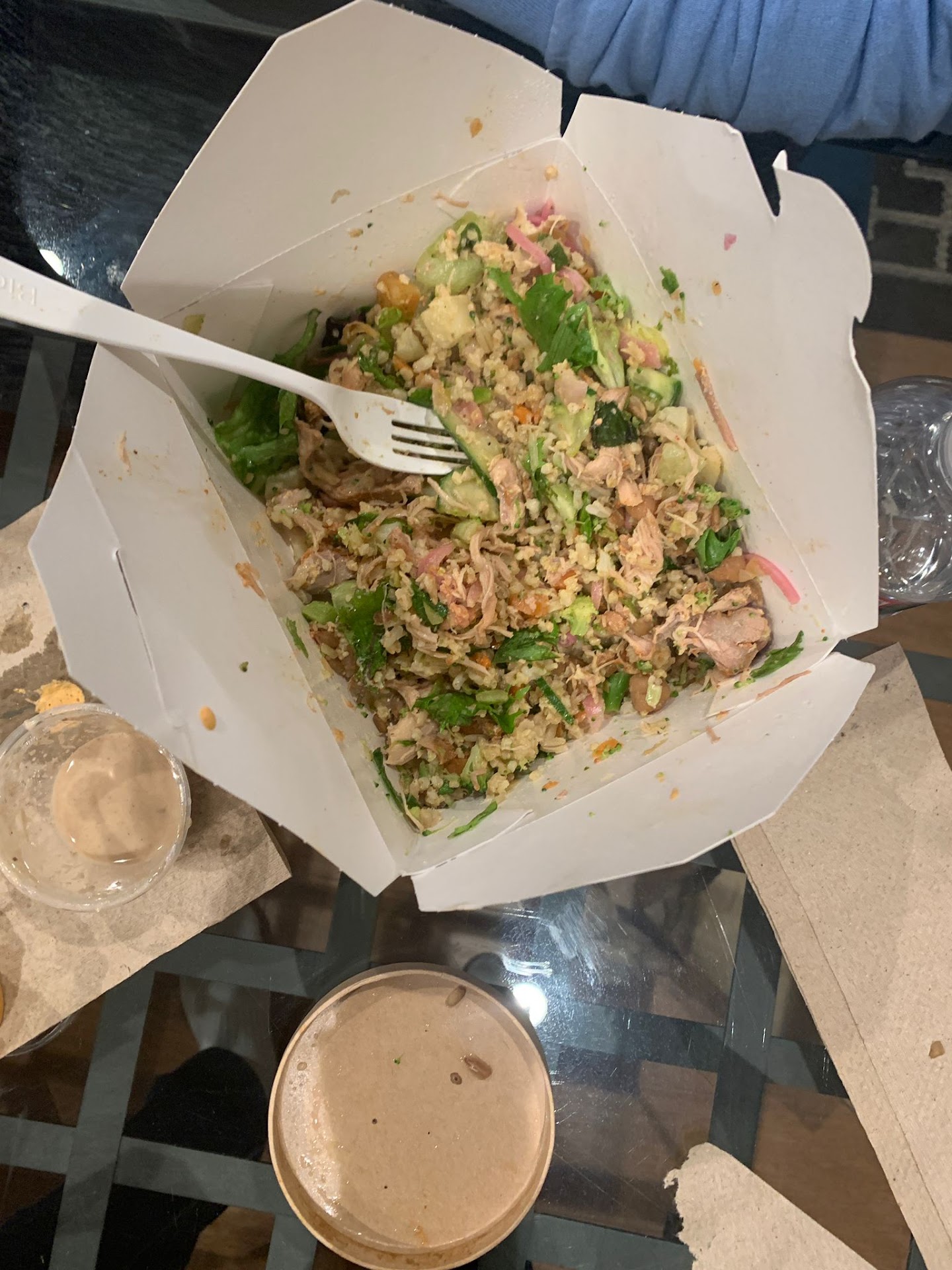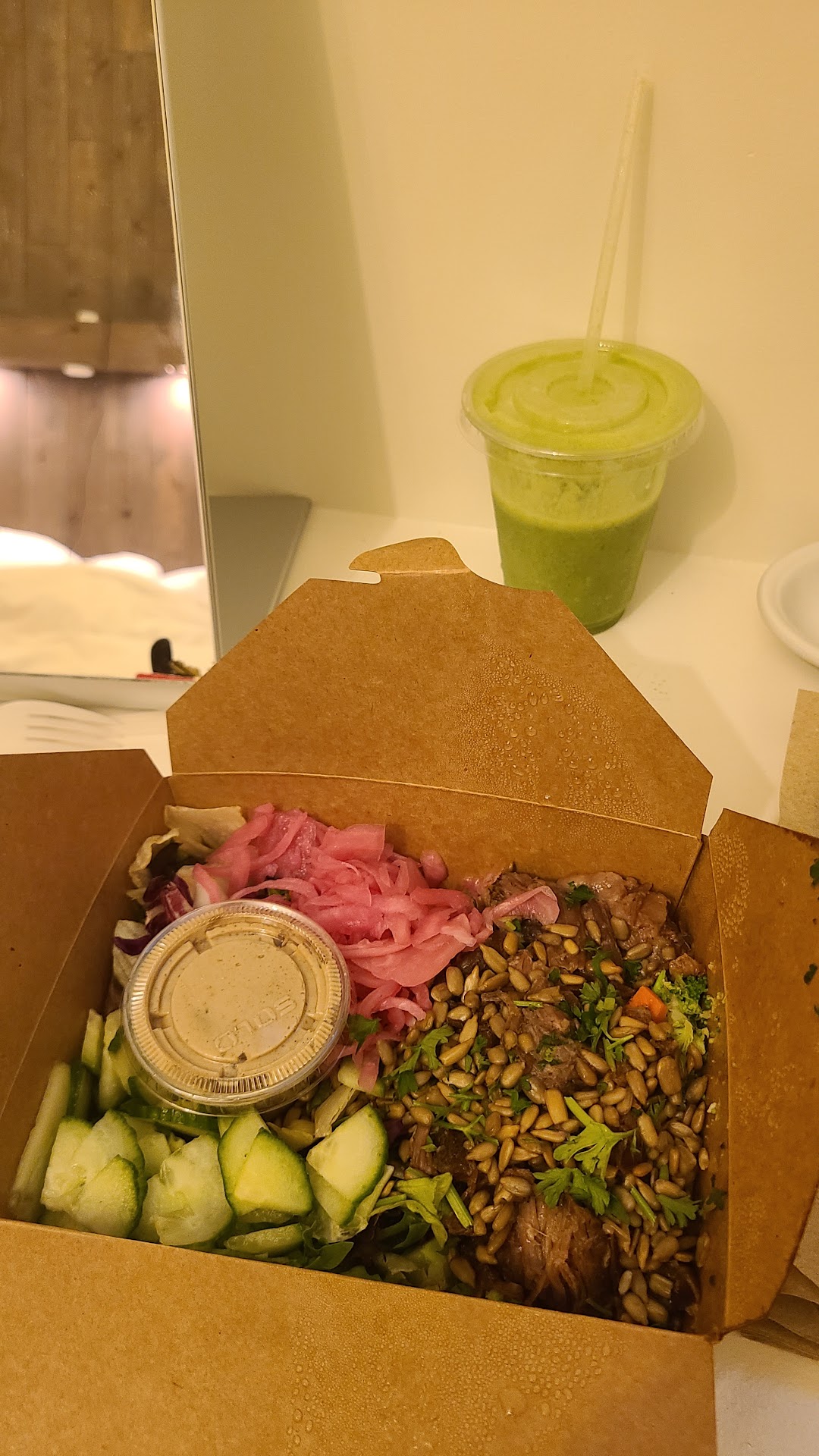 If yall wanna know what I ordered: Chickpea and potato mixed bowl + lemon thyme dressing and Ben's hot sauce. And clean vegetables side (sauce exactly the same as the bowl). I've been looking endlessly for a restaurant like this and I'm so happy I finally found it! Super healthy, affordable, and super satisfying.
