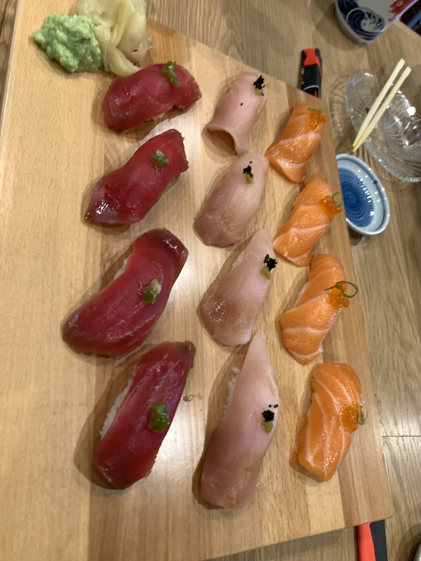 FOOD : Chicken wings. An odd choice at a sushi spot but GOODNESS were these good. They took one of the bones out for ease of eating and the batter they had on this was ridiculous. Crunchy, salty and a little sweet. Juicy chicken served with a sauce to balance it all out. Highly recommended.