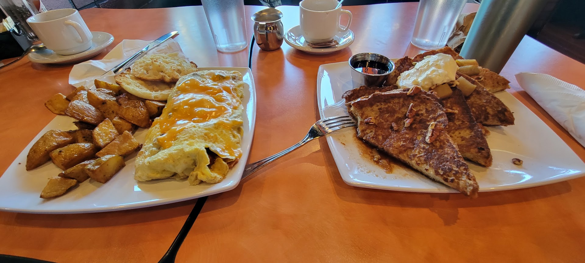 Read moreFood was fairly tasty, though perhaps a touch too much spinach on the chicken pesto omelette for my tastes. And the service was polite, yet lacking in other ways. I've gone three times now: (1), nearing their closing time, and their kitchen was closed, so only beverages were an option. Which was basically fine, just slightly surprising. On trip (2), we arrived at 7:56 am. Their posted hours claim a 7am opening. We were looking for food, but they certainly weren't serving food, and it seemed like even beverage options were pretty limited. Ok, so I figured I'd give it one more try today. Well, we got seated promptly, and menus... And then it took maybe 10-20 minutes of not having our orders taken (we were distracted by conversation, so didn't pay too close attention), before I started wondering if we were supposed to order at the counter or something. I stood up to go check, at which point an apologetic server came over - she said she'd thought someone else had taken our order. On its own, I might have chalked this up to simple error - such things do happen. Between the three experiences, though, I'm a bit disillusioned, and don't expect I'll take folks here...