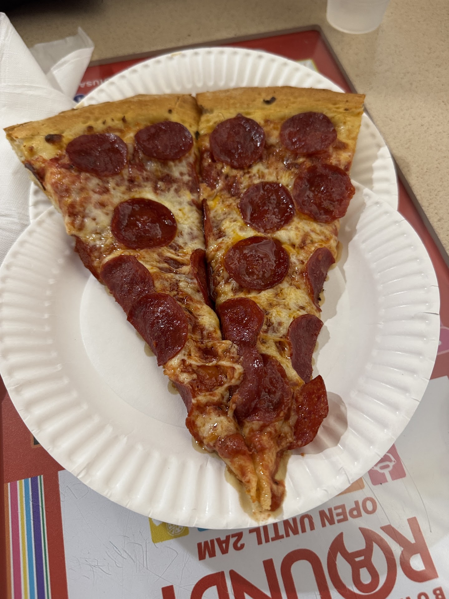 Read moreAfter seeing a whole piping hot pepperoni pizza come out the oven, we really allowed looks to deceive us here. For how good it looked, it was surprisingly bland. I found myself forgetting that I was even eating anything as I was chewing away at it. It’s at least a huge slice that will hold you over, but taste-wise you’re really better off with literally any other pizza...