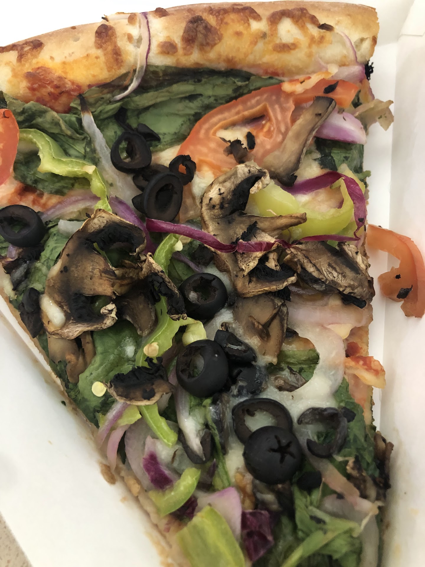 Read moreThe huge slices on display looked so good. Each slice is about $9 so that’s pretty standard in the Bay Area. Boy, was I so disappointed when I bit into the veggie pizza. No flavor, not enough red sauce. Crust wasn’t crisp and had no taste. There’s plenty of other places with better pizza. Even Costco pizza is tastier and...