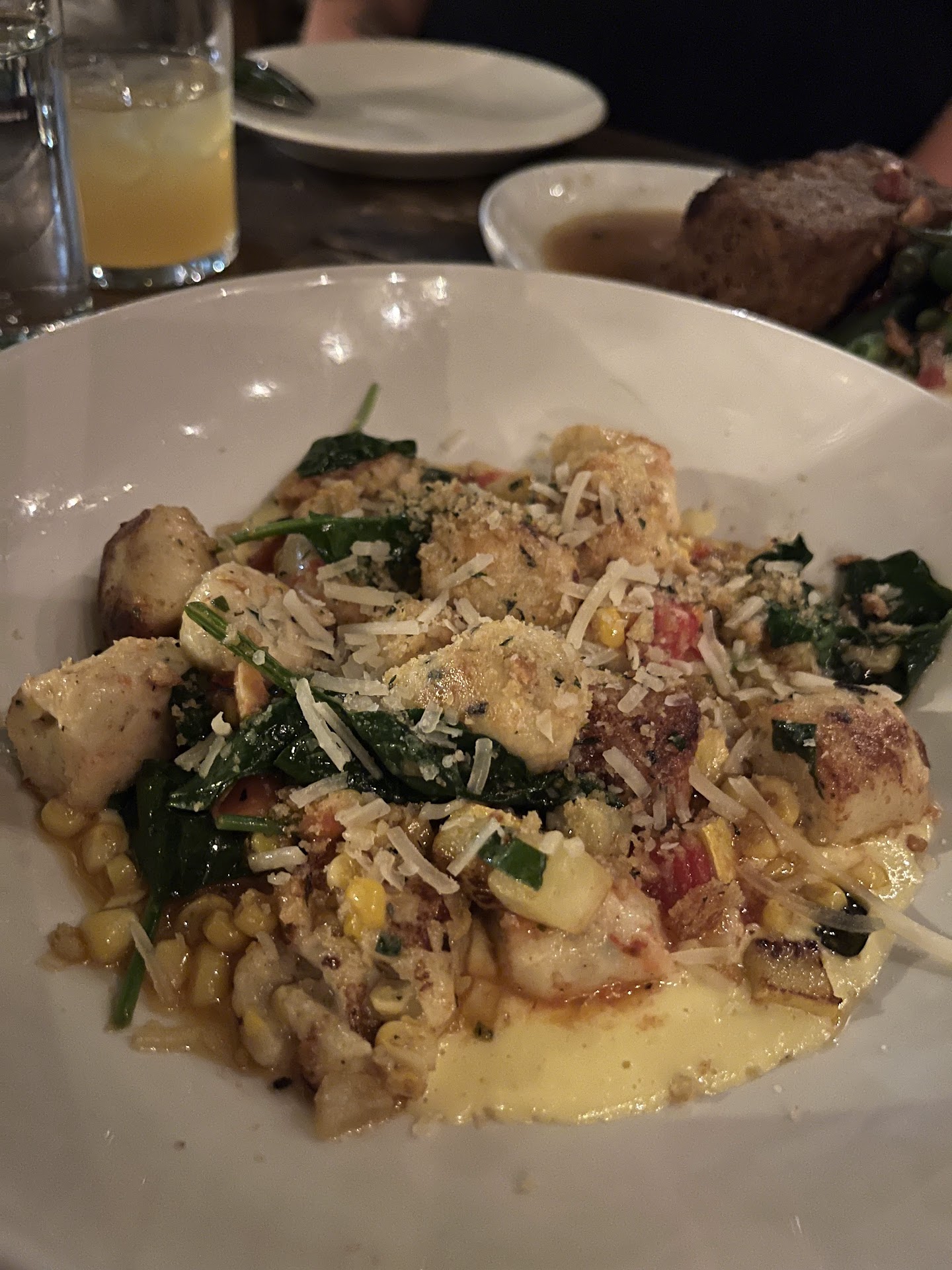 For our main courses, I had planned to get the fried chicken, but walking through the restaurant there were several dishes of the linguine and clam and it looked to die for. Very glad we ordered this, the noodles had a very full seafood flavoring from the delicious broth they were settled in. Our second dish was the gnocchi, because I love gnocchi and order it every time I can. The waitron mentioned it had just been added to the menu today. It was a very fun dish as the gnocchi had a crusted finish and sat in a beautifully colorful succotash.