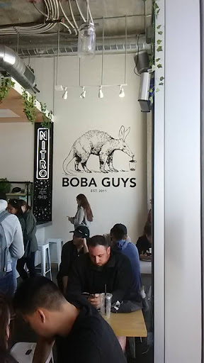 Read moreI went here with some friends for a sweet treat after brunch one day. It was my first time at this location and right from the get go the ambiance felt both new and familiar at the same time. I'm not sure if all Boba Guys have changed their menu lately, but (at least since the last time I've been to one) this one definitely had some flavours that I hadn't seen at BG before. I guess their special or seasonal...? I ended up getting the iced matcha caramel latte with boba. Others in the group got the matcha strawberry, orange glow, hong kong style milk tea, etc. The drinks were good all around! The caramel drink started off as super sweet at first (since all the caramel sank to the bottom), but then got watered down as the ice melted (expectedly). Otherwise, the only downside is that the card reader was iffy (this location is cashless) and kept...