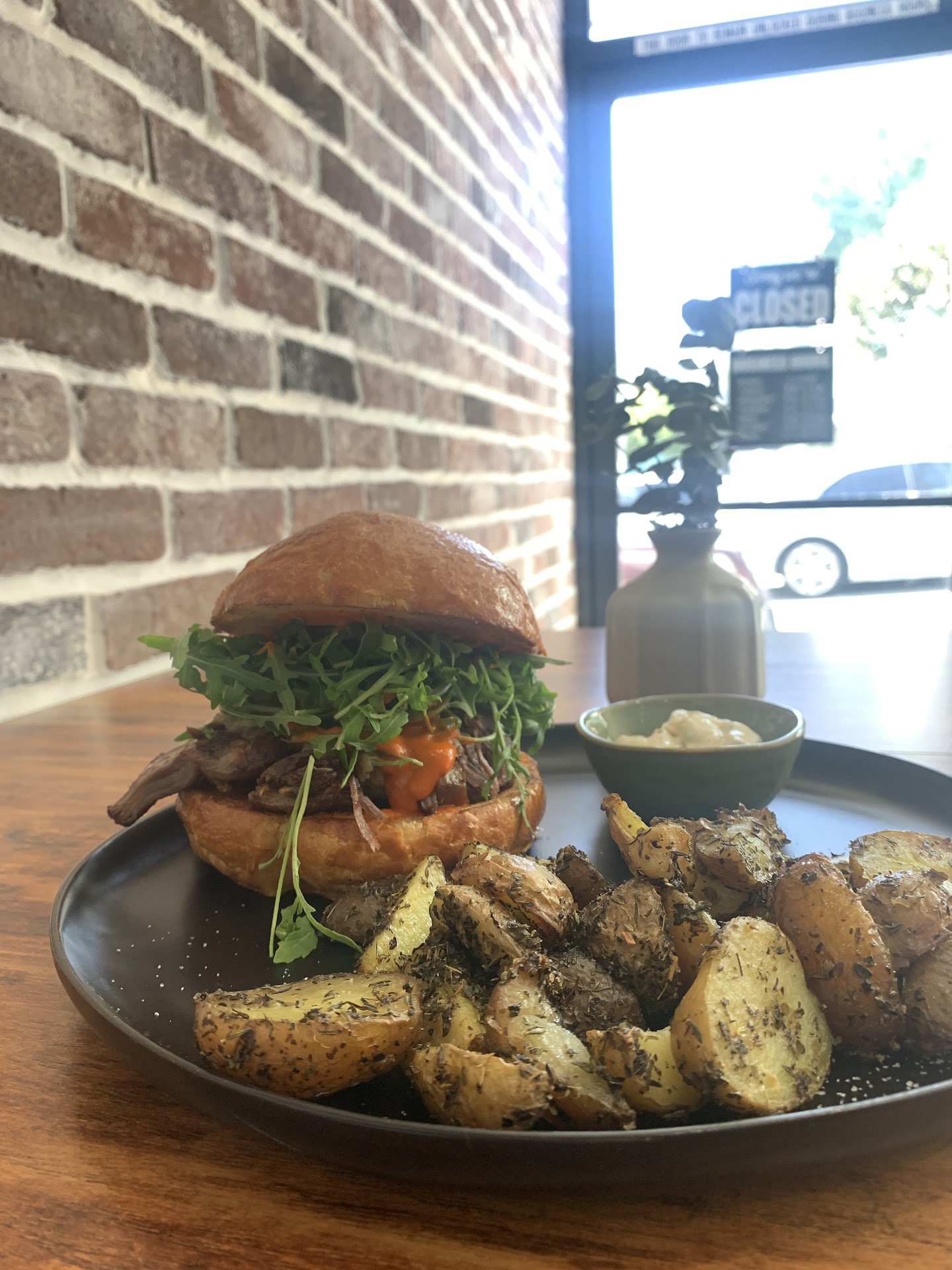 My favorite item is the pulled lamb burger. It’s a mountain of tandoori lamb, with a soft brioche bun, and a perfect light sauce, caramelized onions for sweetness and arugula to cut the richness. It’s truly one of the best bites you can have.