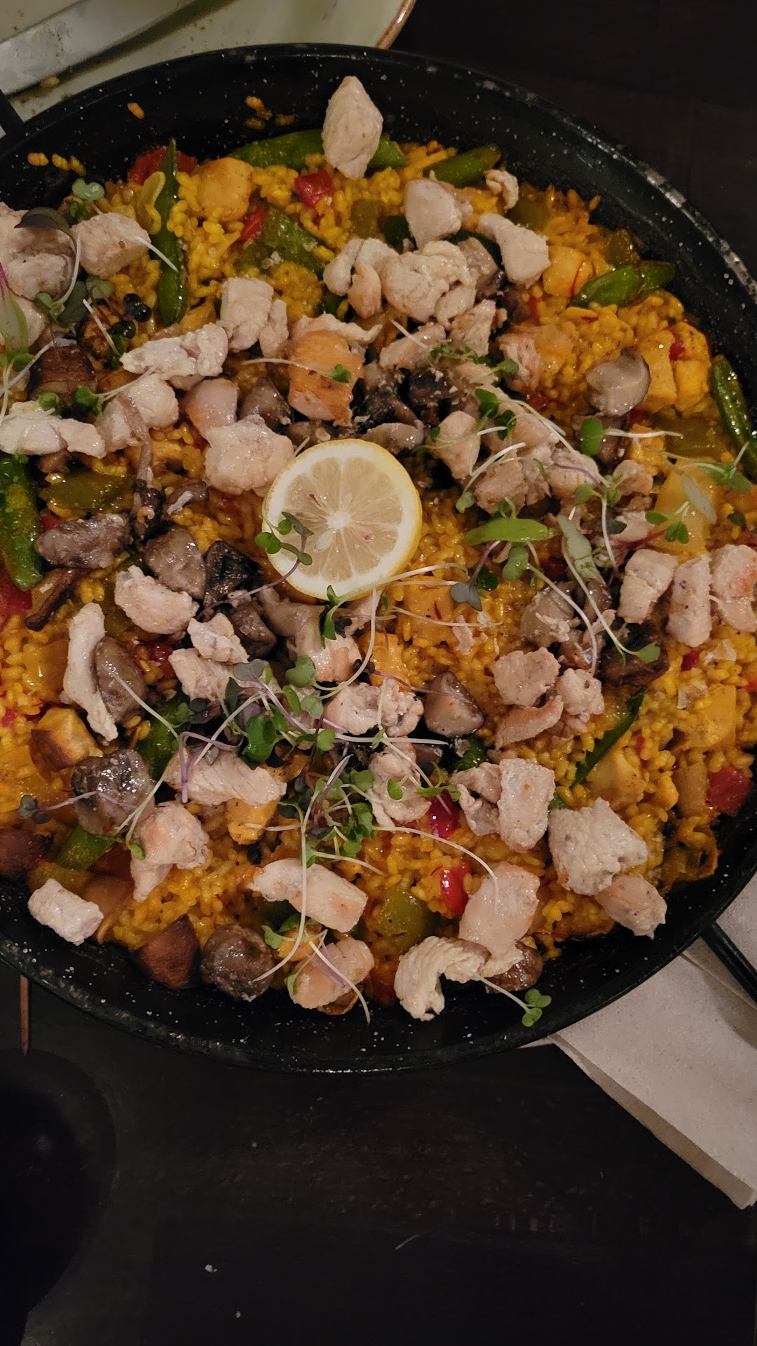 Read moreJust had dinner there tonight and this place was pretty awful.. We got 4 tapas ( 4 people) which were meatballs, brussel sprouts, potatoes and mussels. We will start off with the decent food. The meatballs tasted alright, just 3 small ones though so not really worth the price. The sprouts were good and the potatoes were prolly the best, but itâs kinda hard to screw up fried potatoes covered with sauce and sour cream. The bad, the mussels were super gross, they tasted fishy and old. Iâve had way way better mussels from my hometown in Indiana. The broth that came with it wasnât good either. We got the large surf and turf paella and it was the worst Iâve ever had. The rice was super over cooked and mushy. It was little burnt at the bottom, the sausage was pretty much burnt, the calimari was tough and rubbery. I didnât taste the shrimp or the prawns. We got dessert and the chocolate ganache tasted awful, liquid smoke was so overpowering. Service was painfully slow. Definitely would not ever come back here. Thank gosh we had a later lunch that was amazing because if I was hungry and came here to eat dinner I would...
