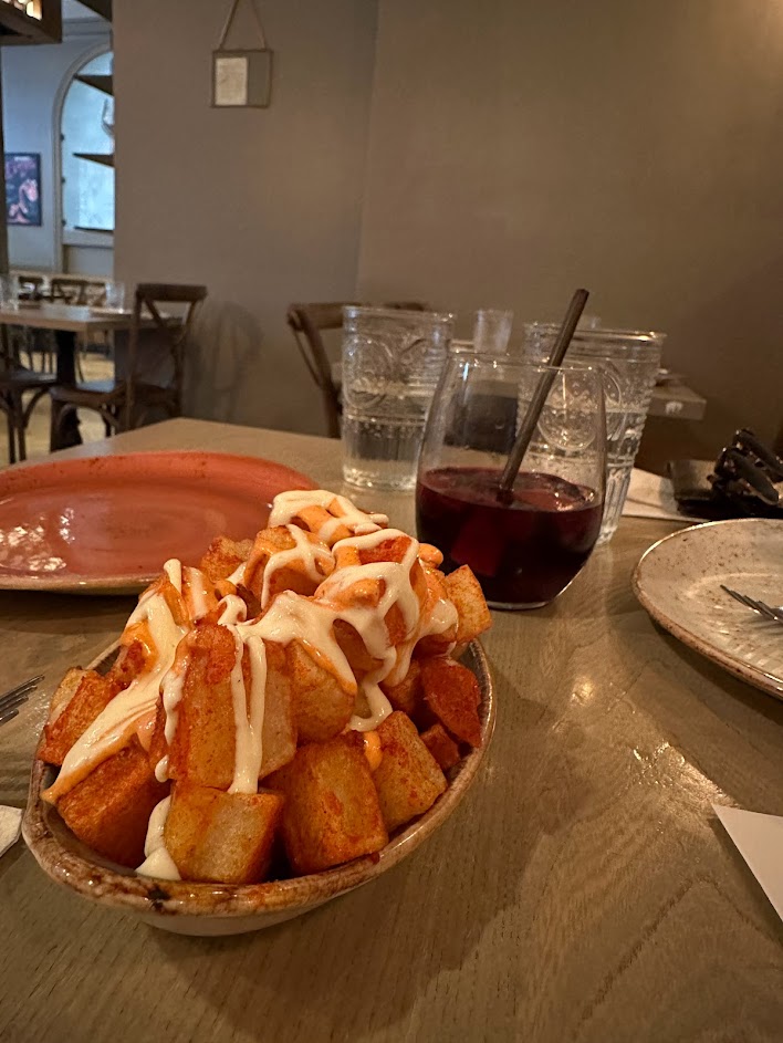 We started with the Patatas Bravas, a delightful dish with fried potatoes in a flavorful brava sauce and creamy garlic aioli.