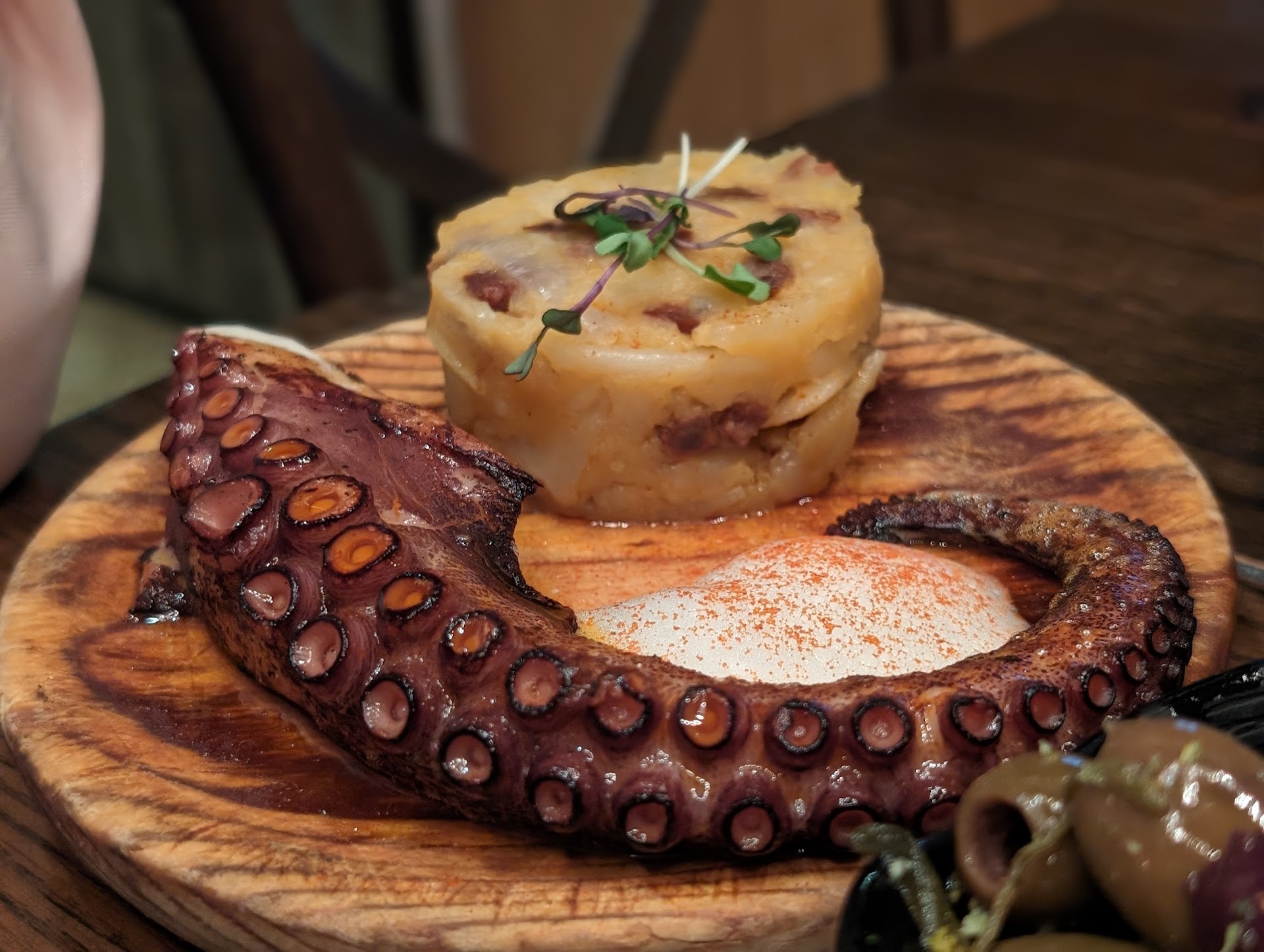 We had the: -Gamba Al Ajillo- 9/10 -Grilled Octopus - great piece of octopus, but too salty! 6/10 (you should get this and just wipe the salt off yourself!) -Rabo de Buey - 7/10 (I wouldn't order it again) -Secreto Iberico - too dry so 5/10 -Pimiento Piquillo - the one with crab roe in it 6/10 -Smoked Oysters - 10/10 -Squid Ink Paella 3/10 - mostly just butter, not much seafood. If you're loading up on carbs, this is a...