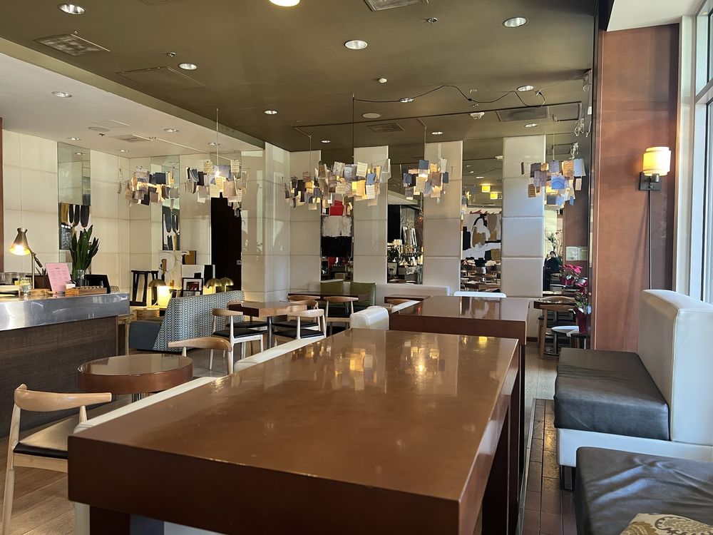Ambience - top notch! The decor is beautiful and stylish. The place has ample space for customers. While it's located along the highway, it's surprisingly quiet and relaxing inside. Great place to study, work, hang out, eat!
