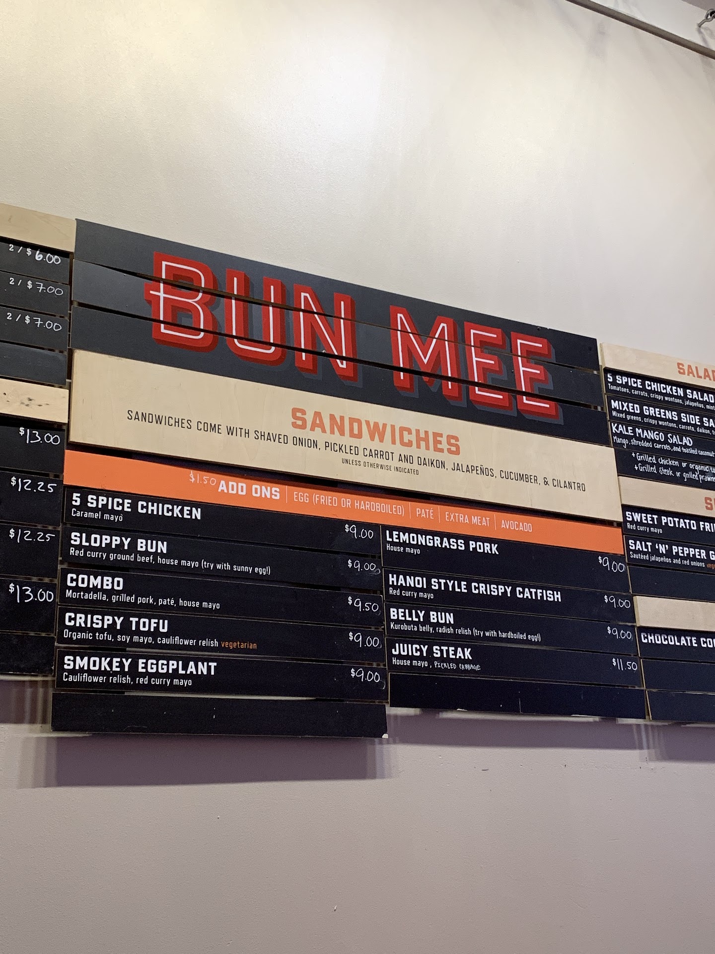 They have vegan options, including as far as I can tell, the tofu bahn mi and eggplant bahn mi (substituting soy mayo).