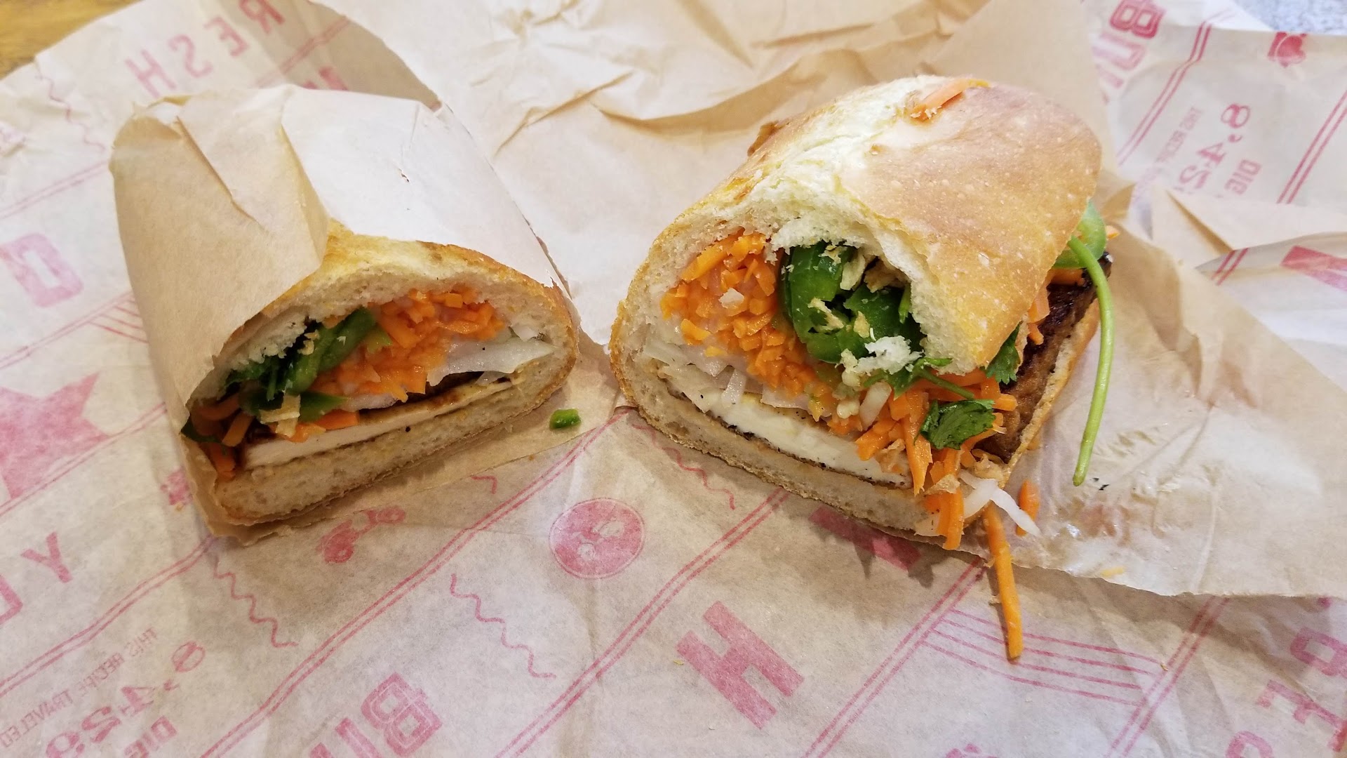 I got the tofu bahn mi through MealPal and it appears to be the normal size, which is nice, and the sandwich itself was good.
