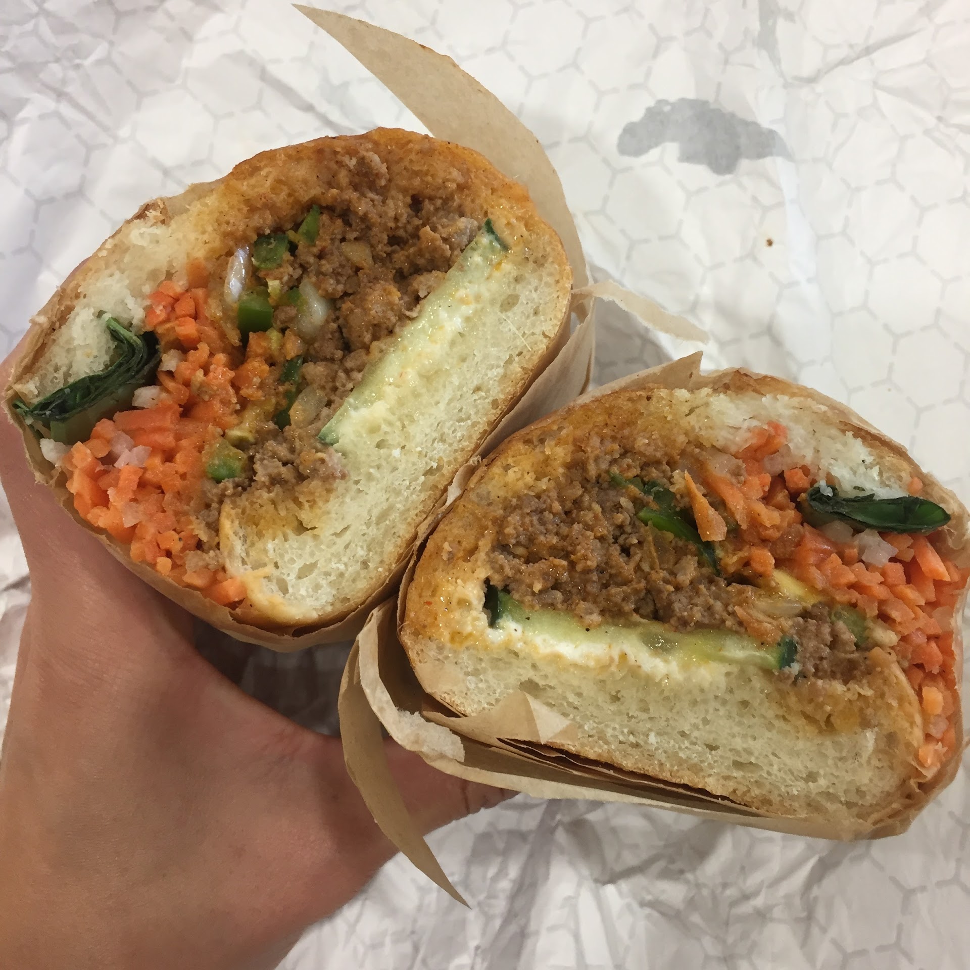 I thought I’d try something new and go for the Sloppy Bun which has red curry ground beef, garlic mayo, onions, basil and jalapenos. I was a little disappointed as there was barely any curry flavor which I was really hoping for and the ground beef was just whatever. The bread was just alright. Usually I’ll cut the sandwich some slack if the bread is really good, but it was alright.