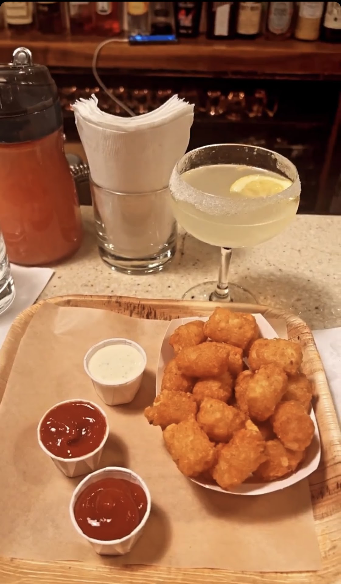 Ambience: The place is small. It has 3 tables that seat people, and a couple of bar stools at the bar. Everyone else stands. I do not mind it particularly much, because we usually stay over for a drink or two and move some place else, but I believe it would be bothersome to spend the entire evenings standing.