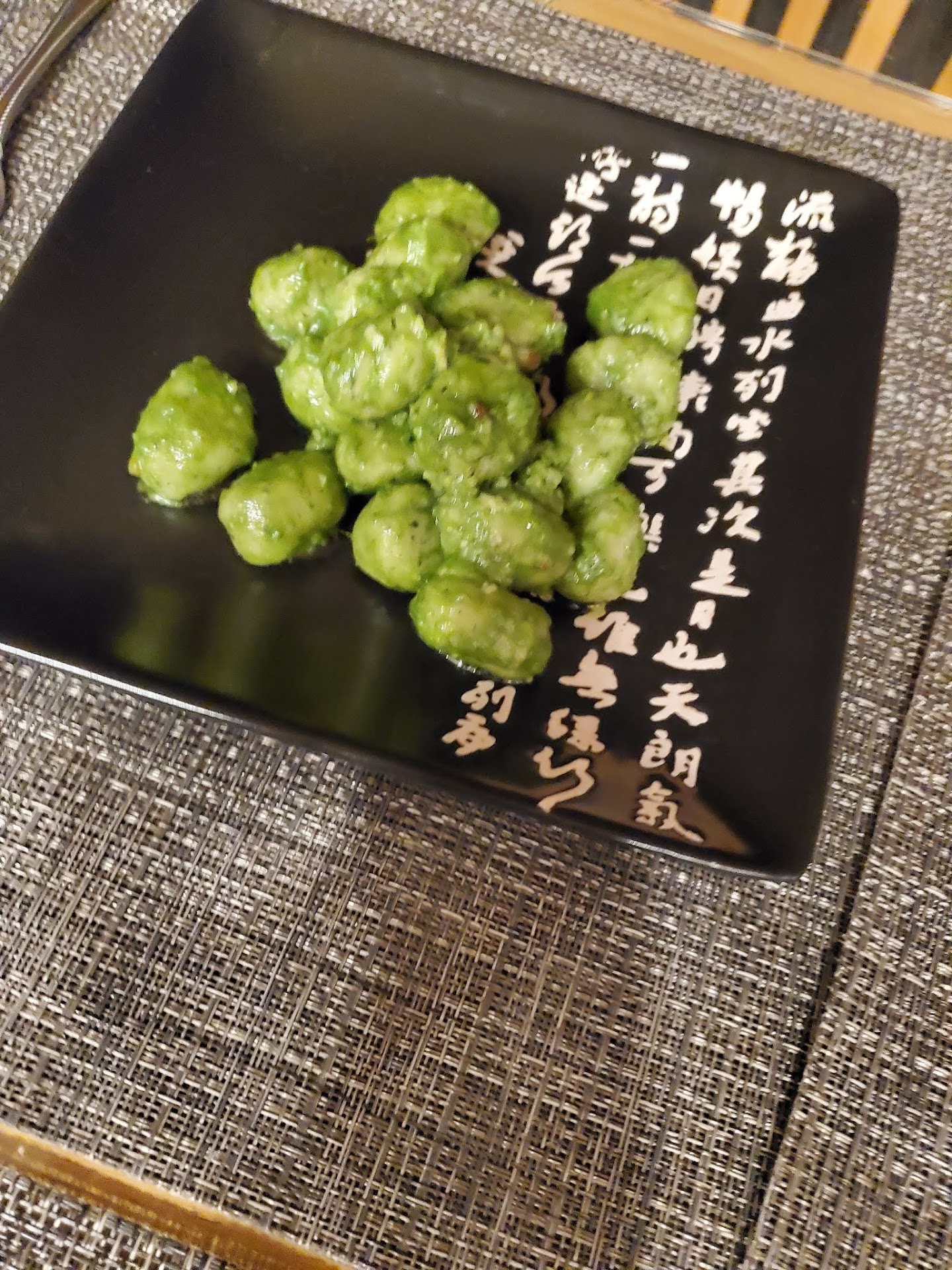 I ordered pasta with Pesto. The pesto was similar to a liquid green slim thrown on the pasta which was swimming in it. The pasta actually turned green, and it wasn't a green wheat.