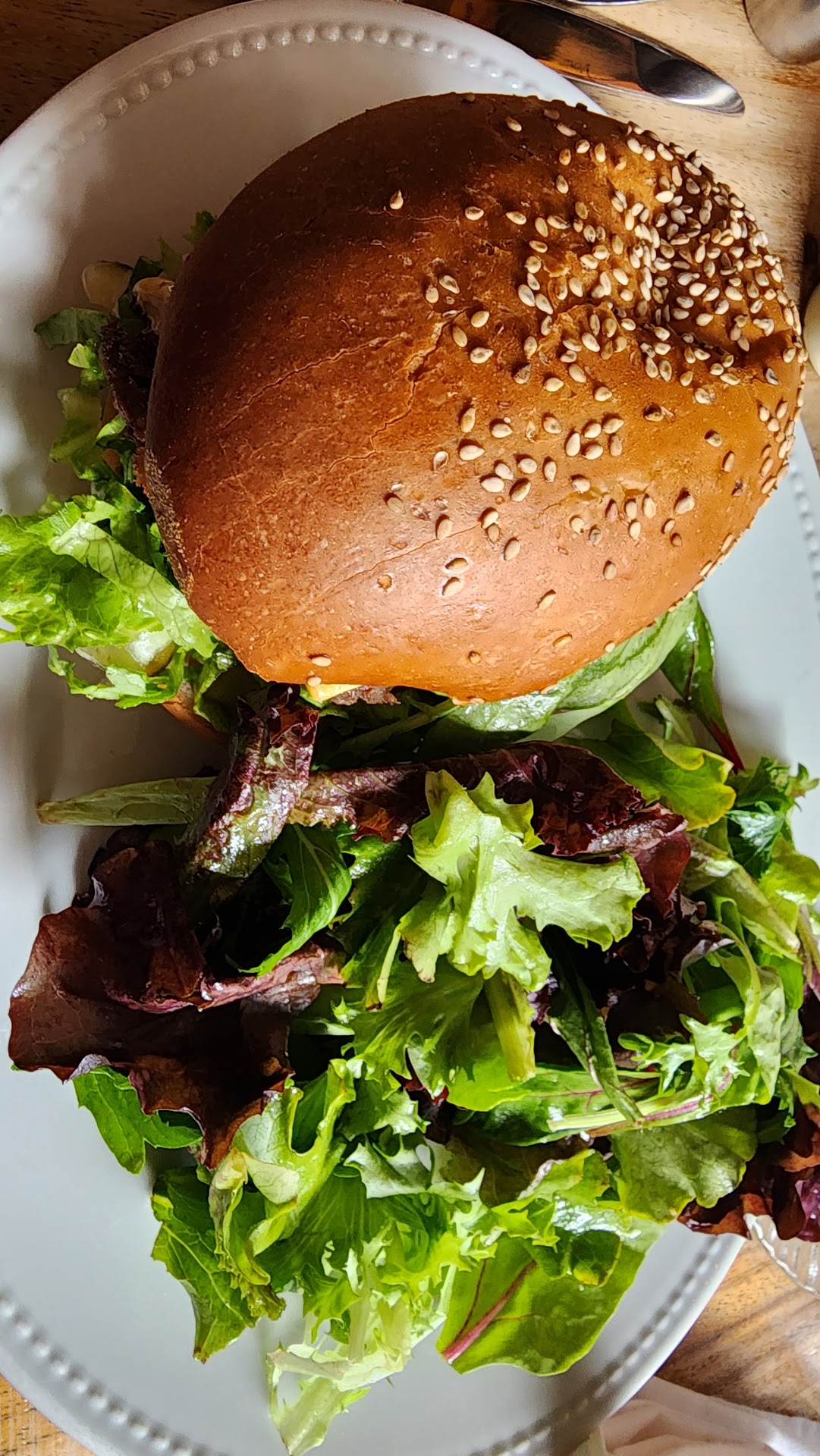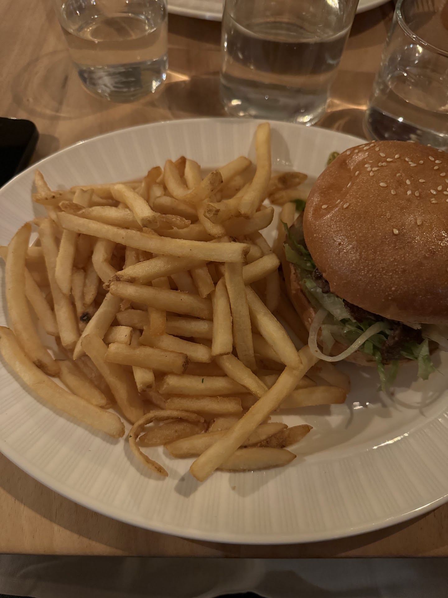 anyways I forced my bf to take me here to eat after a date so we can try this "burger so good that made me move to SF." I mean it sounded like it would taste yummy from the description.... got there around 5:30pm on Saturday. best to get a reservation, as my bf would say bc he hates lines with a passion. but honestly we only waited for about 30 minutes -- seemed longer bc it was the same weekend barbie and Oppenheimer came out and the restaurant is next to a movie theatre B ruH