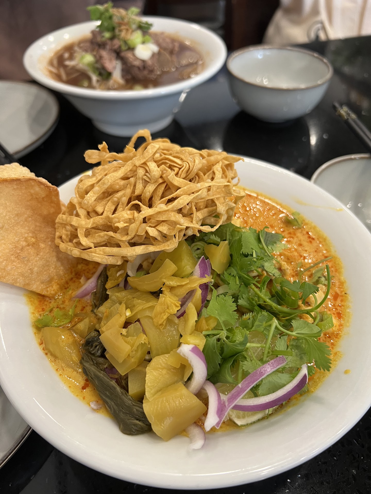 Thai Dishes: Koh Moo Yang | 5/5 | Very tender and the house made hot sauce is a MUST dip. Tom Yum Noodle Soup | 5/5 | Very fragrant and flavorful but I wish it was just a bit spicier because I like it Buldak spicy. Pad See Ew | 5/5 | Not overly sweet at all and it has the "Wok-Hei" (Smoky aroma from Wok) which is always good. Khao Soi | 4/5 | The curry broth is delicious but I would skip the chicken pieces next time.