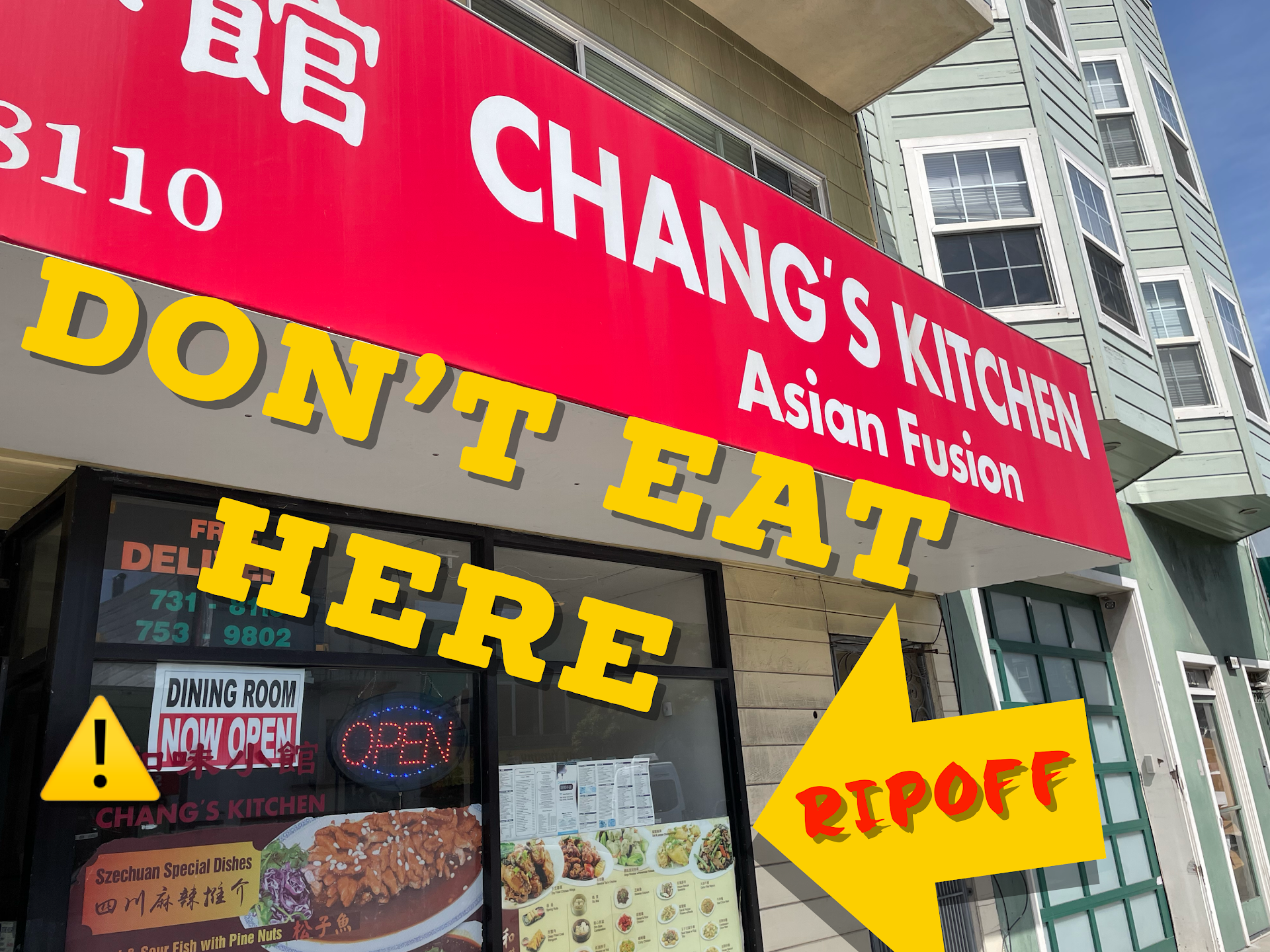 Backstory: We’re here on Vacation and had just left the SF Botanical Garden and were looking on Google for food in the area. The first recommendation on Google was a place called San Tung. The food looked good and reviews were good too. We got there and to our surprise there was a LONG WAIT, with tons of people outside waiting to get seated (see photo). All of things what led us to look around and what other options we might consider. We looked directly across the street and seen Chang’s Kitchen. We walked over to see the pictures of their food in the store front’s window. The food looks delicious so we have it a try. From the moment we walked in, the staff was kind, attentive, communicative and welcoming. The food came out in a very timely manner. (See photos for everything we ordered). Every single dish met our expectations and more! Our top favorite dishes from our order was the Wings, the Honey Walnut Shrimp and their Orange Chicken. Portions: very, very generous! We had boxes, and boxes of leftovers. Price/Cost: AFFORDABLE! Everything in SF is inflated and expensive (as all tourists towns seem to be) but to our surprise, our total was $117.xx! (Again, we got SO MUCH FOOD!) We predicted nothing less than $150.xx so we were extremely surprised at the affordability. Parking: we got lucky and found paid parking in the street. We personally did not see any kind of customer-parking but that appeared to be the case for every business on that street. Our only complaint: we understand that SF has a large number of people who order their food through apps to be picked up and delivered by food delivery people on bikes, but it really rubbed us the wrong way on how many of these food-delivery people on bikes are so impatient and demanding to the staff. They all seem to walk in as if their pick-up orders took priority over the sit down customers. It just was irritating to watch and hear while we sat and enjoyed our meal. Not the restaurants fault at all, and it would be nice is there was a different location in the restaurant specifically for those kinds of pick-up orders. All and All: we are so glad we were put in a position to have to look for another option to dine-in for dinner because these hidden gems always seem to be the underdogs that are...
