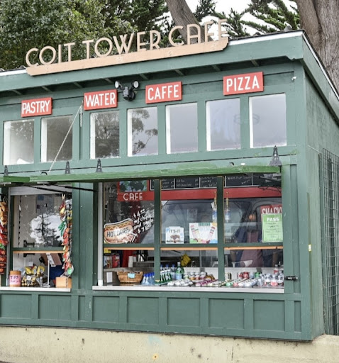 Coit Tower Cafe Mere yards away from Coit Tower it serves Pizza , Drinks, Coffee, Water, Chips , Sandwiches , Candy and more. I had chips, candy bar and water and the price wasn’t unreasonable.