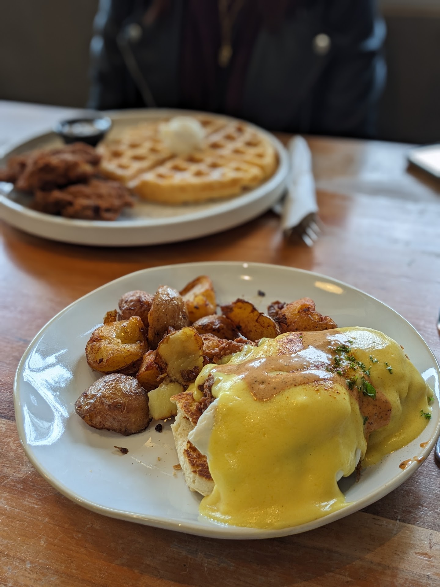 Fried chicken eggs Benedict 5/5: what more can you ask for, a traditional breakfast dish with the added all American favorite - fried chicken. Yes please!!