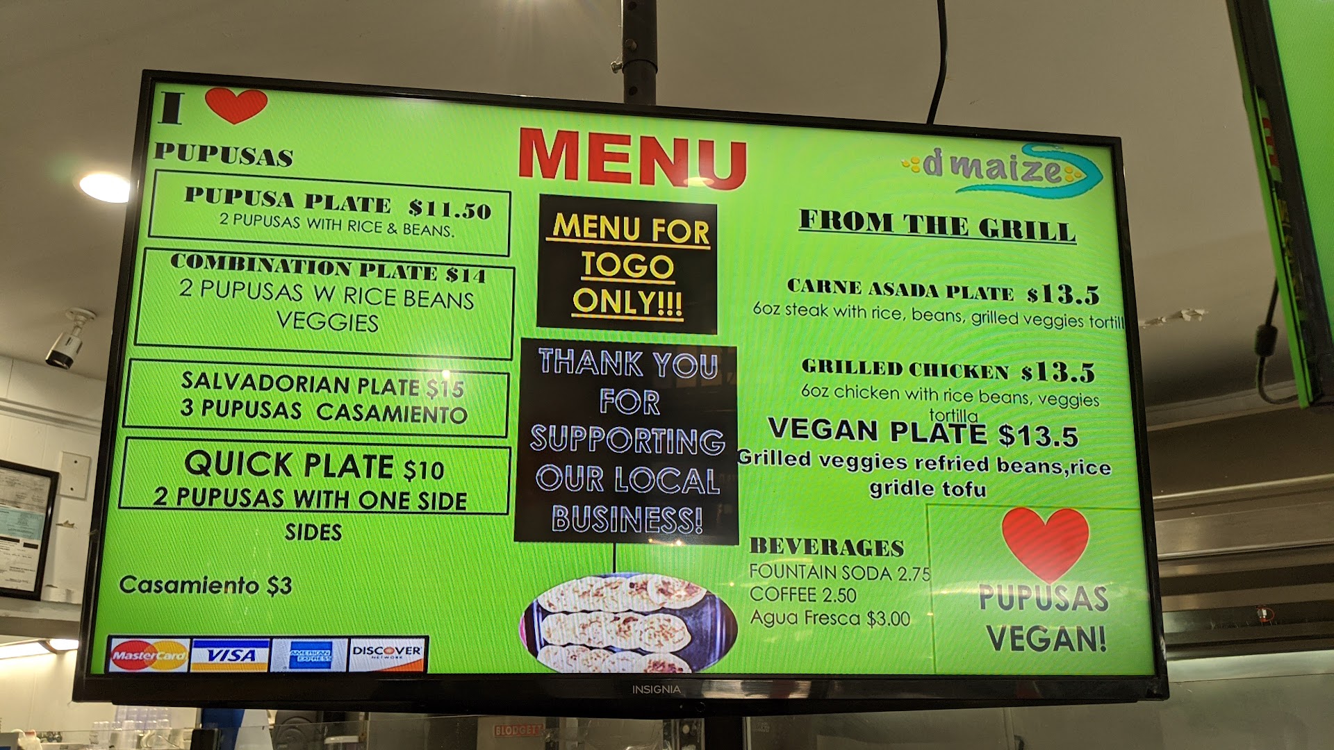 Read moreExtremely delicious and very affordable pupusas! Lots of variety to choose from and the slaw that comes with it is a nice contrast to the pupusa. Staff was super friendly and the restaurant space was very safely set-up with barriers and social distancing signs everywhere. They also provided hand sanitizer after touching the payment pad. There is an outdoor patio that is currently open for folks to eat their meal there, but I...
