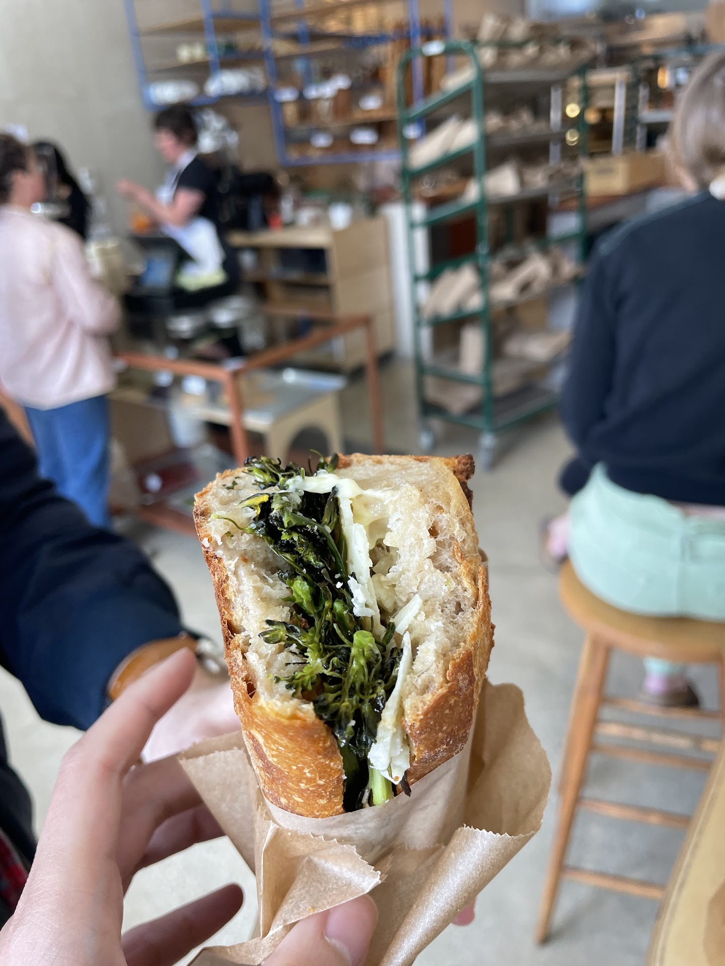 Original review: Home-runs that I'll be daydreaming about for a while: Baguette: It was warm and delicious. We devoured the whole thing on our walk home. The crust had the perfect crisp/crunch and the inside was soft. I think it was whole wheat sourdough. Strawberry scone: It was a totally different texture than the scones I'm used to. Instead of being buttery, sweet, and kind of dry, it was gooey and delicious. I think they used fresh strawberries, which helped add moisture. The top was dusted with sugar, but the scone wasn't overly sweet. Great scone! Chocolate chip cookie: Incredible. Great texture and flavor. Not too sweet. No notes.