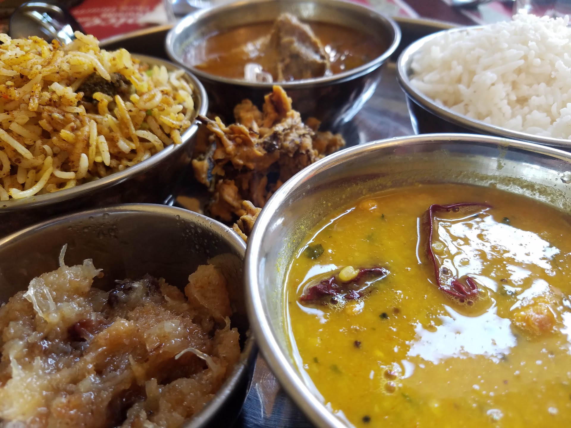 No joke, this is the best Indian food in San Francisco. We visited around noon and ended up getting items from both the breakfast and lunch sections. The madras filter coffee (that I didn't see on the menu, but was still available) was on par with the quality you'd get at a south Indian place in the south bay. The idlis were good but the vada stole the breakfast show. One bite and I was transported to the darshini outside my school in India. The chutneys and sambar perfectly complemented the idlis and vada. I ordered the uluvacharu goat biriyani and it was divine. The goat was cooked to perfection, something other Indian restaurants in the bay area often mess up leading to an overly chewy meat. The spices were perfect and the dish overall ensured I will become a regular. It took me a few years, but I've finally found my biriyani fix in sf.