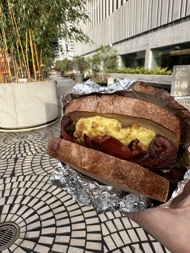 While visiting SF, I researched places to get a great breakfast sandwich and many recommended Devil's Teeth - they were not wrong! I got the special breakfast sandwich - a little expensive, but it was fantastic. The biscuit was the star - buttery, flaky, savory; the salty bacon and the pepper jack cheese were a great contrast, and then the lemon aioli was a great binder to bring it together. I got a side of hot sauce and added a little - a great compliment and contrast to the sandwich, but it's great without this as well. It comes with 2 eggs and plenty of bacon, very filling.
