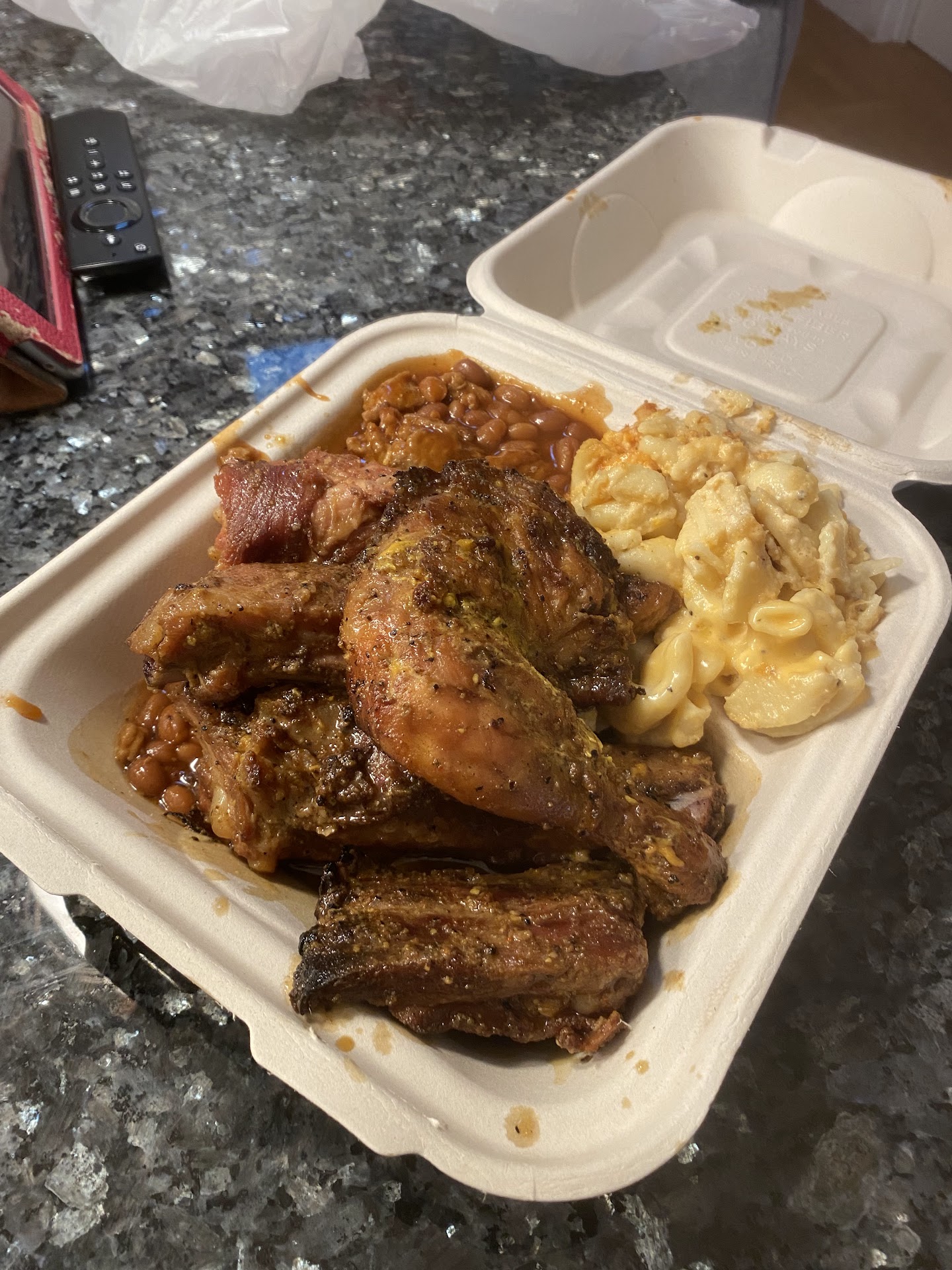 Ribs 4/5 Chicken 4/5 Links 3.5/5 Mac & cheese 4/5 Green beans 4/5