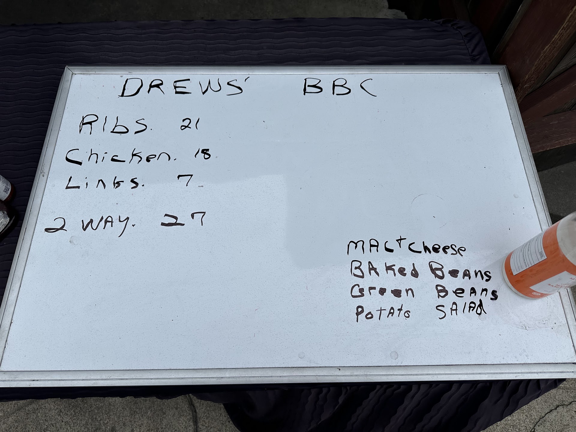 The ribs and chicken were cooked very well and the rub used was good. Nice smoky flavor that only charcoal can give you. There were some bottled BBQ sauces available on the table but I forgot to add some before I left. No matter it wasn’t needed since the rub was good. Although it wasn’t the best BBQ I’ve had it is good and I would recommend trying Drew’s BBQ...