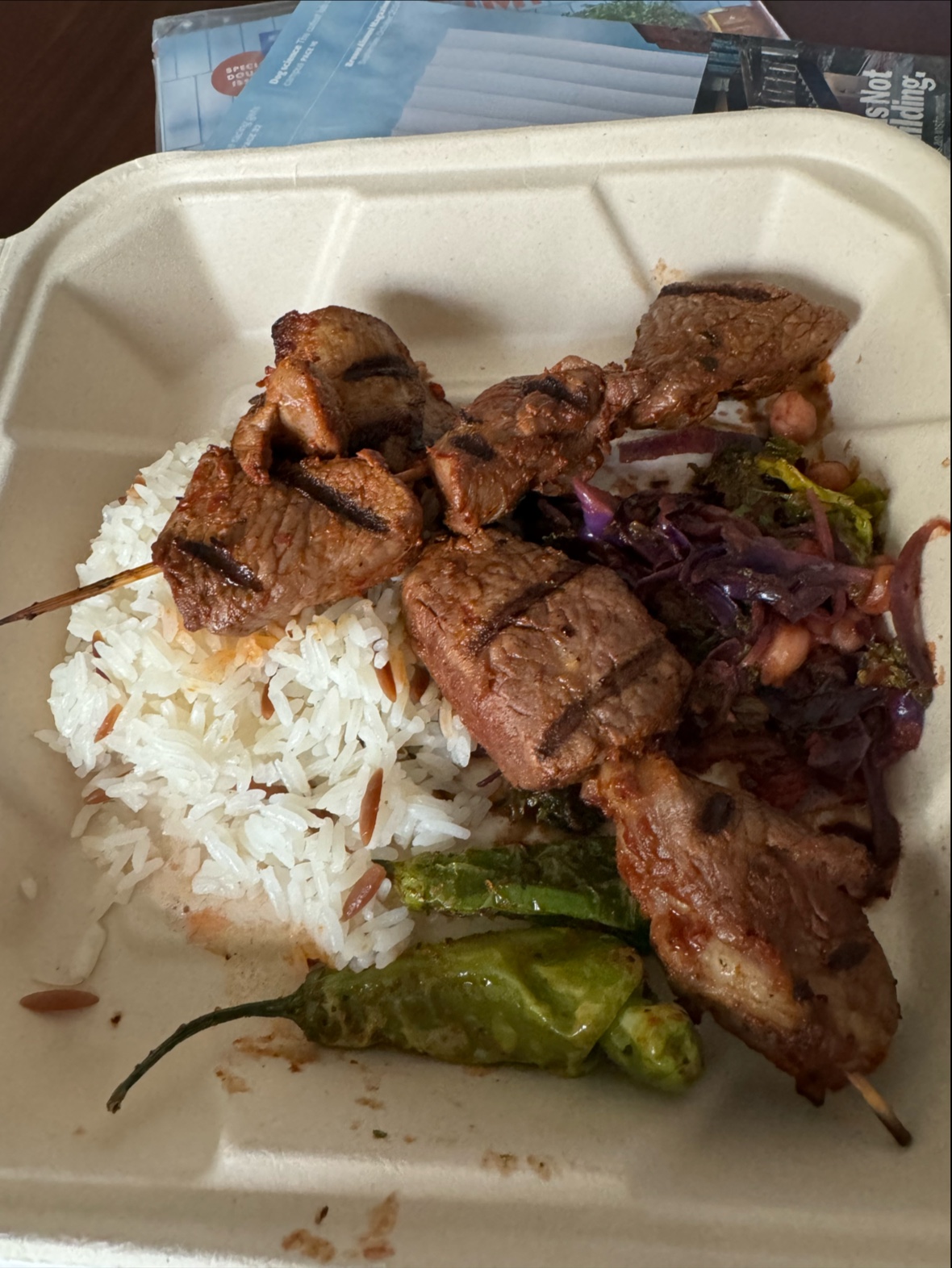 My personal favorite meat was the lamb brochette, though everything was seasoned well and tasted great. The real star of the meal, however, was the warm grape leaves appetizer, with rice and tzatziki sauce that packed a ton of flavor. Don’t forget to squeeze the lemon on top!