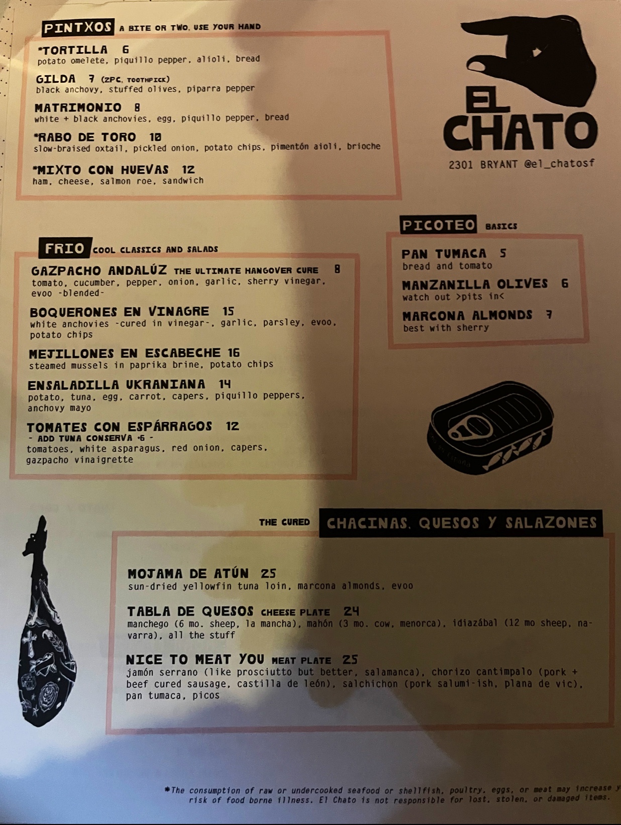 Read moreI've enjoyed both visits to El Chato very much! The ambiance is so fun, the wine selection is incredible and the music is great. I enjoyed the cocktail with Mommenpop Ruby Grapefruit! So much so, I took a bottle home with me. I also took a Spanish red wine (NATURALEZA SALVAJE CLARETE, AZUL Y GARANZA) with me that I loved. The Tortilla was just what I'd hoped it would be, delicious! This is the perfect place for light bites and excellent wine with a great vibe to catch up with friends or stop at before going out. I definitely will be back and highly...