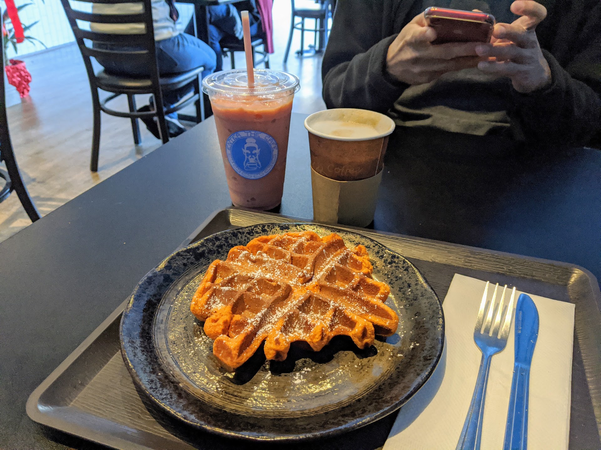 The menu is expansive with a wide range of choices, which is great especially for breakfast. I ordered a sausage and egg breakfast wrap and an ube mochi waffle. Both items turned out delicious - the American-style savory wrap was rich and filling; the Asian-style sweet dessert was exhilarating and satisfying. Definitely enjoyed my breakfast and look forward to coming back...