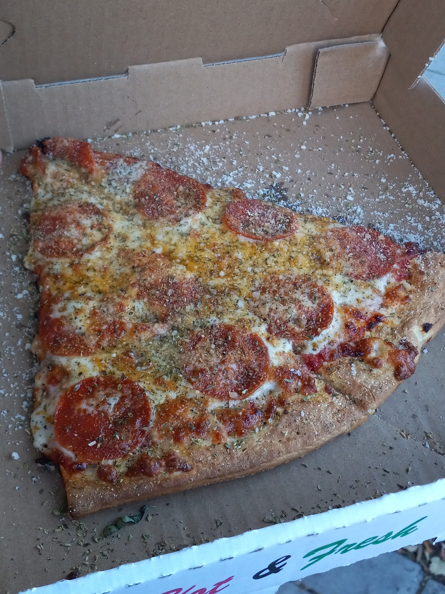 The fiasco was even more of a disaster because they messed up the delivery so badly. Given that we live 0.2 miles (4 min) from Extreme Pizza, you might think that at least it would arrive hot. But no! I don’t know where the delivery person was when they called to tell us they were at our door; but they weren’t at our door and their language skills were sufficiently poor that they were unable to communicate with us and they kept hanging up their phone. It was a good ten minutes, maybe more, before things got worked out and the now well cooling pizza arrived.