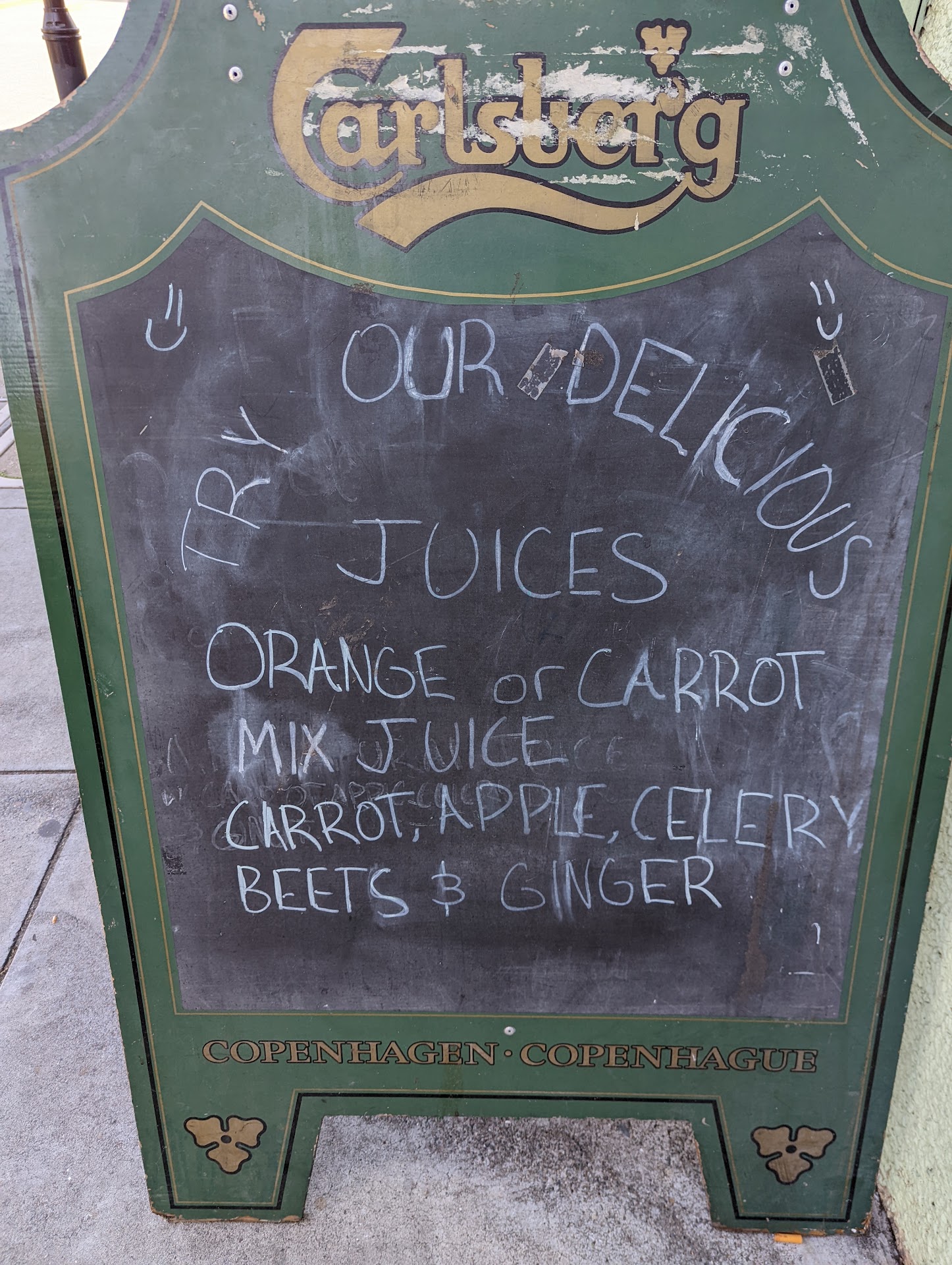 They have fresh orange juice (and other juices too.) The oranges are juiced to order, which I haven't seen in any restaurant, cafe, deli, or other food place before. They also make sandwiches people rave about, but personally, I come here for the juice.