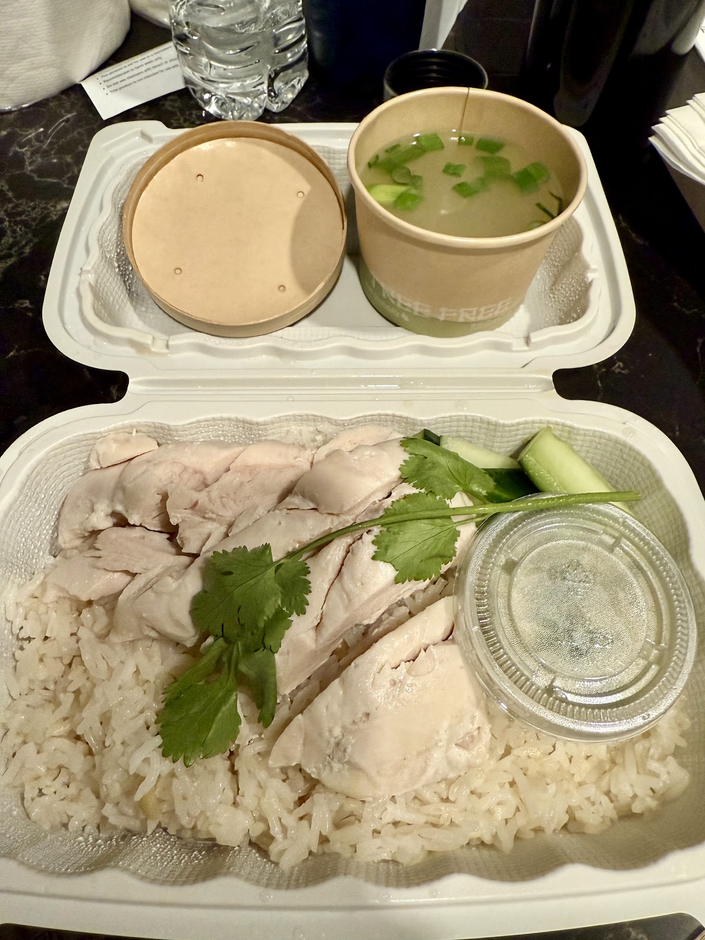 Read moreOn the scale of chicken & rice dishes, Gai is on the upper end for fast casual options. Rooster & Rice is my main basis of comparison which I got in both San Francisco and Irvine. Gai’s lean chicken & rice dish is savoury but not overly salty, which I appreciate. I noticed this especially with the soup, which was a clear, delightful broth with spring onions. Rooster’s soup, in contrast, tastes like straight up chicken stock from a carton with an extra pound of salt added. I can’t even eat it because it’s too salty. Rooster’s chicken also caused me to have a reaction where I experienced indigestion and slight difficulty breathing after eating their chicken. I didn’t have any issues with the meal from Gai’s so their preparation must be better, as the food seems safer. This was a great takeout option and I’d...