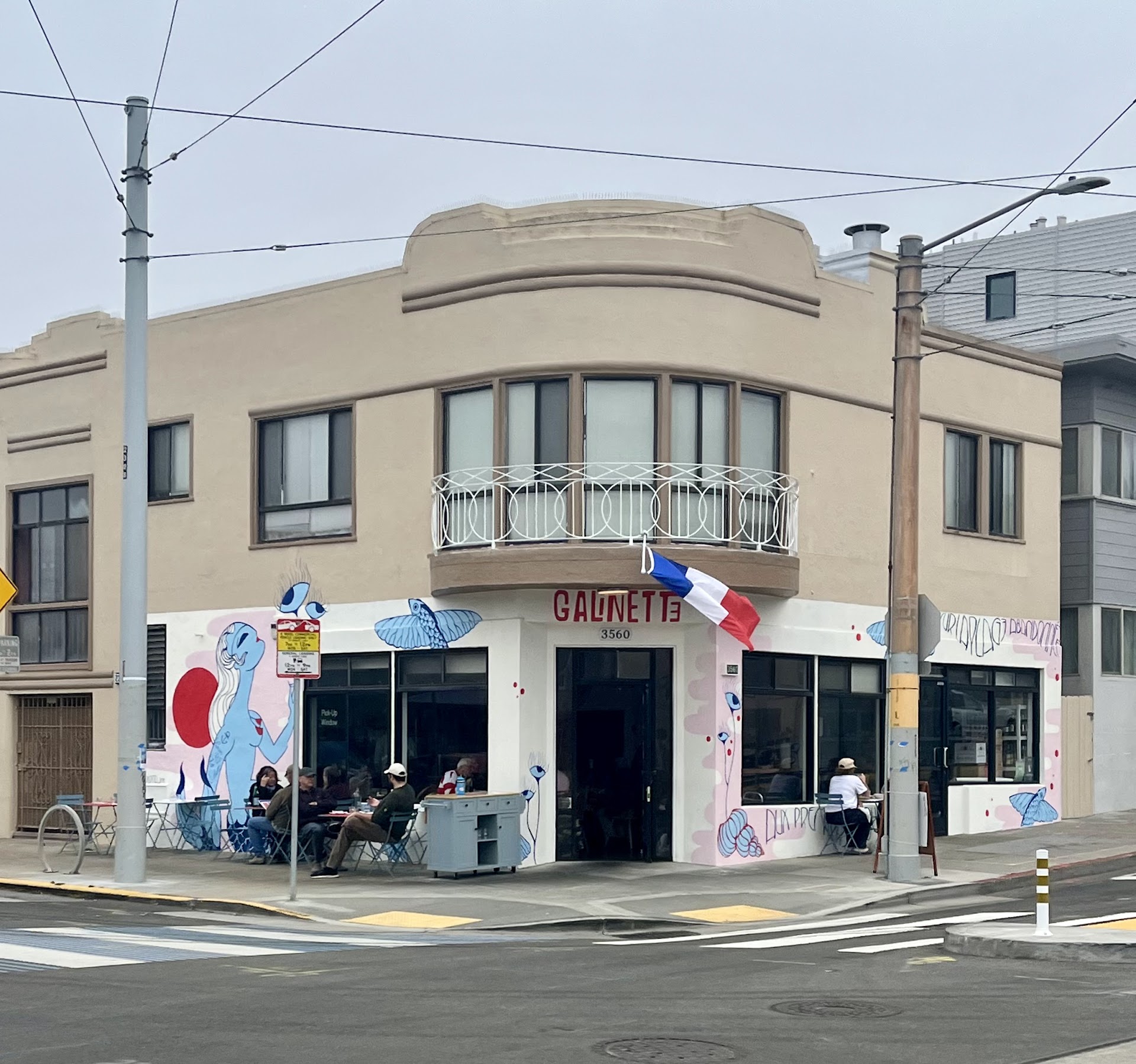 Recently heard a lot about a new French Bistro in outer Sunset "Galinette" my wife and I decided to give it a try. I asked the owner Alex, a debonair French fellow from Marseille the significance of the moniker " Galinette" apparently it's a sort of flying fish, which by the way is depicted on a painting of one of the wall. The place is small, with an open kitchen, there is two dining room one as you enter the restaurant with height tables or so, and another dining room adjacent with a long communal table that can seats 12 to 15 peoples, we sat in the first dining room, at a table for two. Both my wife and I found the place noisy & cold, we asked the waiter to close the door. We ordered, my wife the steam mussels, copious & well prepared seating on a green sauce ($17) with no accompaniment, we felt it should have come with fries, but you can order that separately for another ($7) she washed that with a glass of cote du Rhone ($16).